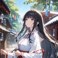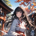 4枚目:Animagine XL v3.1:多数のアニメキャラを学習している兄魔人、summerと指定しているけど早秋の雰囲気を醸し出してきました。巫女衣装もなんかいろいろ混じっている気がします。年齢感的にはOsukiniMixXLと同じぐらいでしょうか。