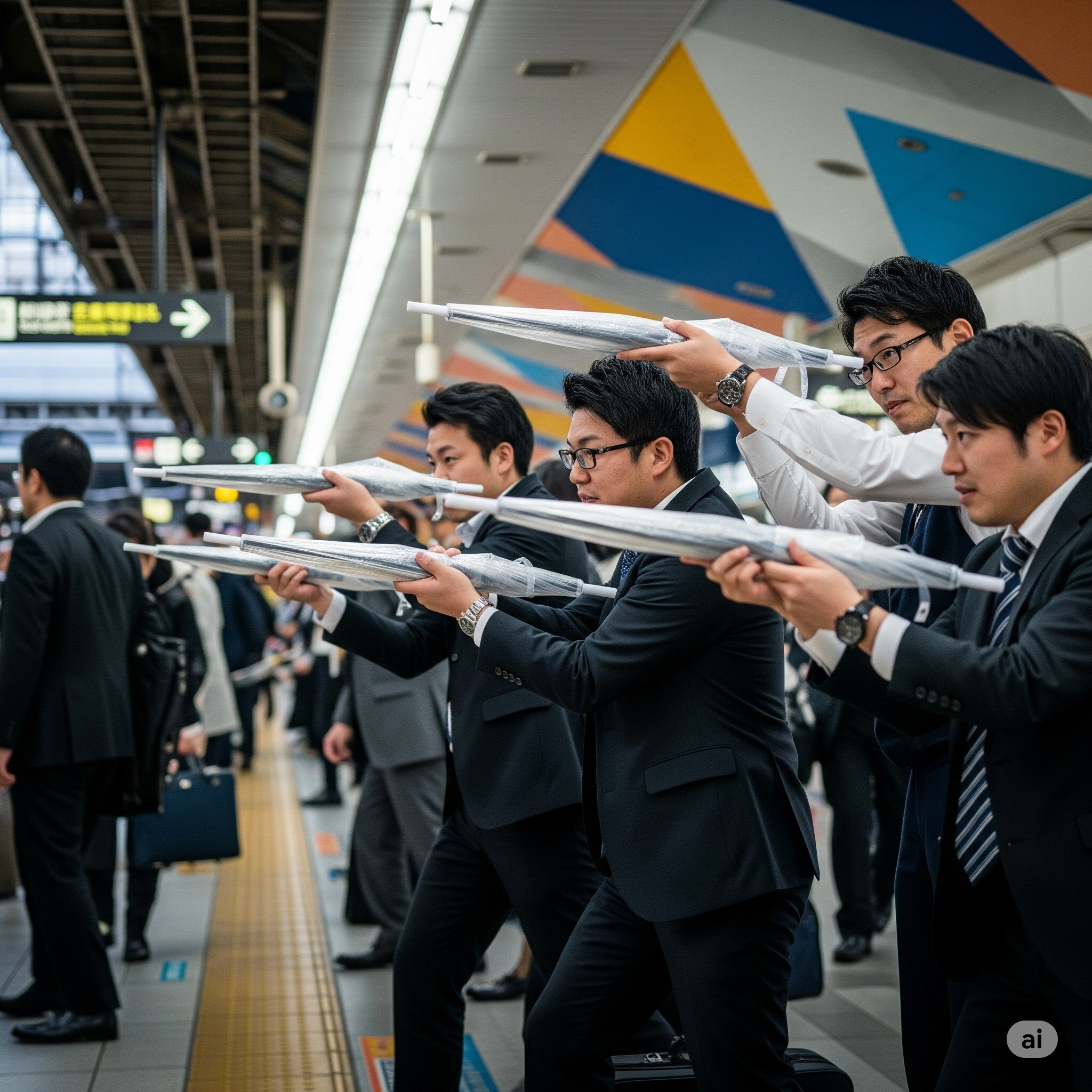 ①は「たたんだ傘を銃に見立てた特殊部隊ゴッコ」をテーマに作成しました。この手法では、たたんだ形に生成できるようです。