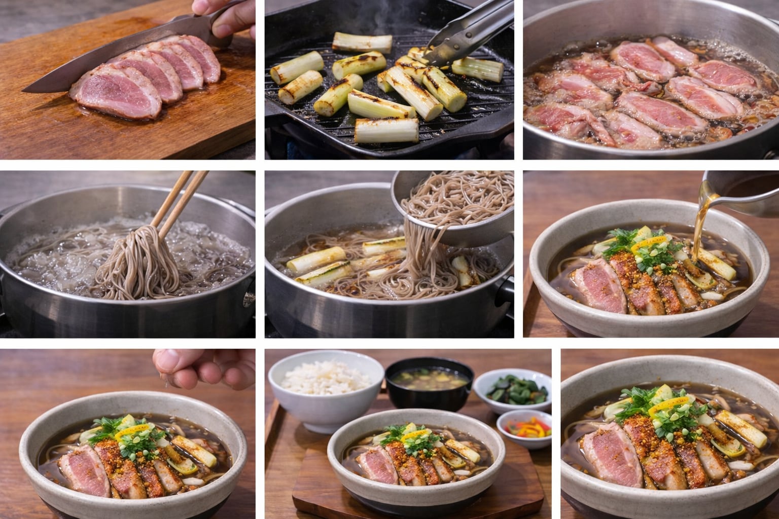 鴨南蛮そば定食は、出汁の香りに鴨の脂が溶けて、つゆが完成していく料理だ。今日の一杯は、そばの香りが負けず、鴨の火入れも上品で、ねぎの焼き香が全体を締めていた。濃さで押さず、香りで食べさせる。静かに強い定食だった。