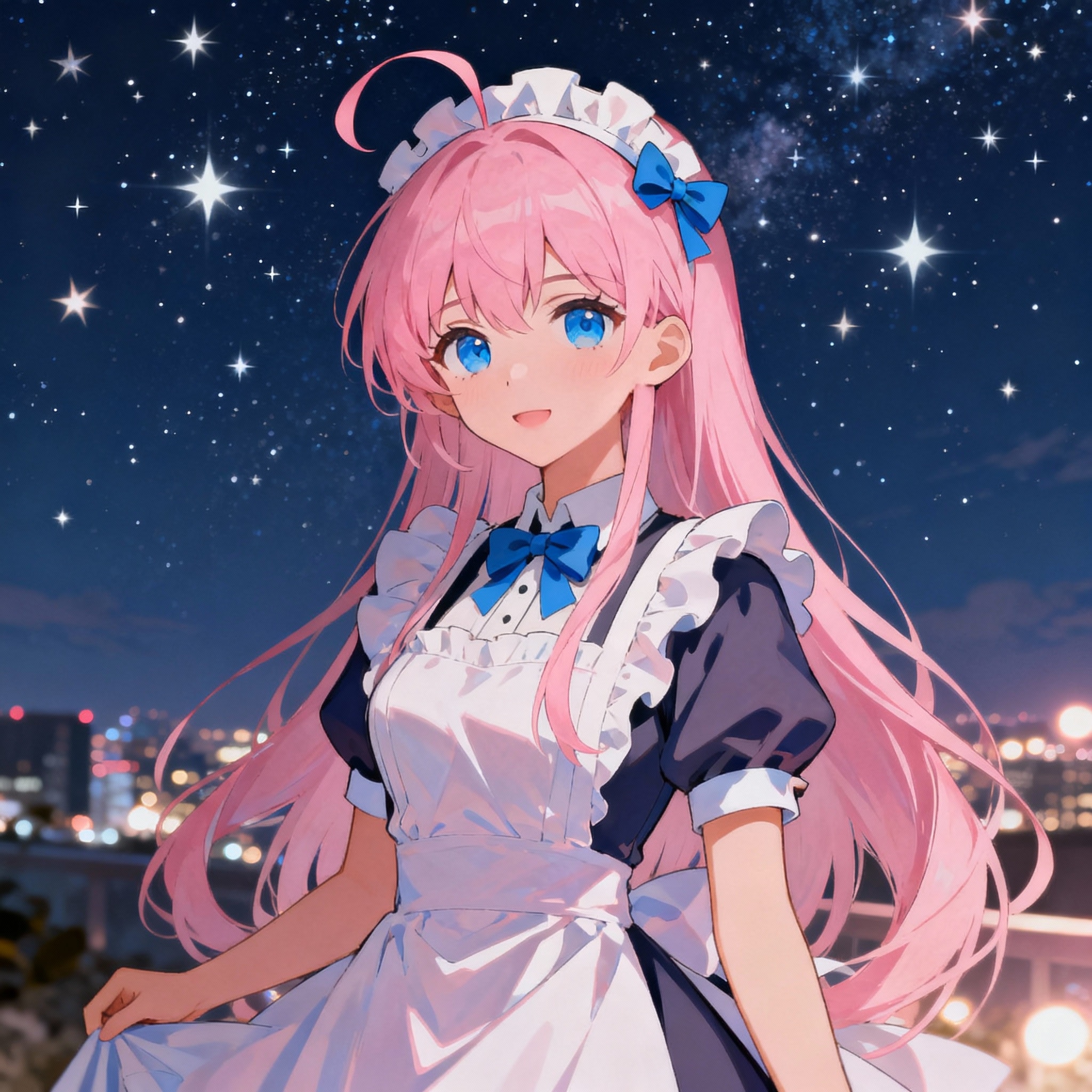 夜景と星空と蒼い瞳のメイドさん