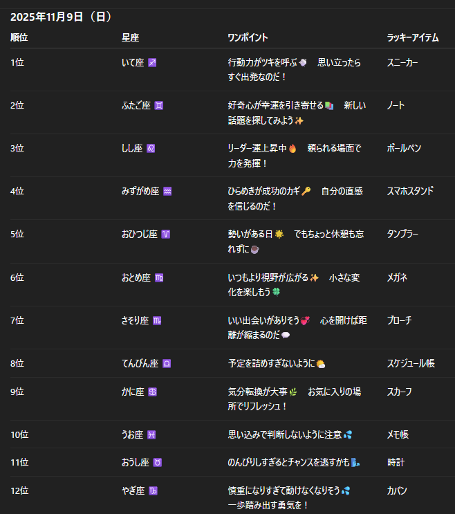 チャトピちゃん占い(11/09) 2025/11/08 使用したAI ChatGPT #チャトピちゃん占い 明日の運勢をお届けーチャトピちゃん占いー 呪文 入力なし ねこなみさくら 8,810 投稿 フォロー 1,034 フォロワー 1,135 ねこなみさくらは下記が好きな方に効果があります猫/メイドさん/猫耳/ろりっ子/謎な物/くすっとしたい/日替わり画像投稿量が多いのでホームの閲覧がお勧めです呪文やネタの利用はご自由にーR-15・18もー生成用?自作診断メーカーまとめhttps://www.chichi-pui.com/posts/824ee8bb-e261-4f91-bb51-afb6142bc12b/ ねこなみさくらさんの他の作品 ねこなみさくらさんの他の作品 たてよみした ねこなみさくら チャトピちゃん占い(12/17) ねこなみさくら きょうのオムライス(12/16) ねこなみさくら てててー、てってててー(12/16) ねこなみさくら まだ売り切れ中 ねこなみさくら たてよみした ねこなみさくら チャトピちゃん占い(12/17) ねこなみさくら きょうのオムライス(12/16) ねこなみさくら てててー、てってててー(12/16) ねこなみさくら まだ売り切れ中 ねこなみさくら ほんとこうすればいいのになぁと ねこなみさくら