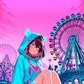 誰もいない夜の遊園地で。