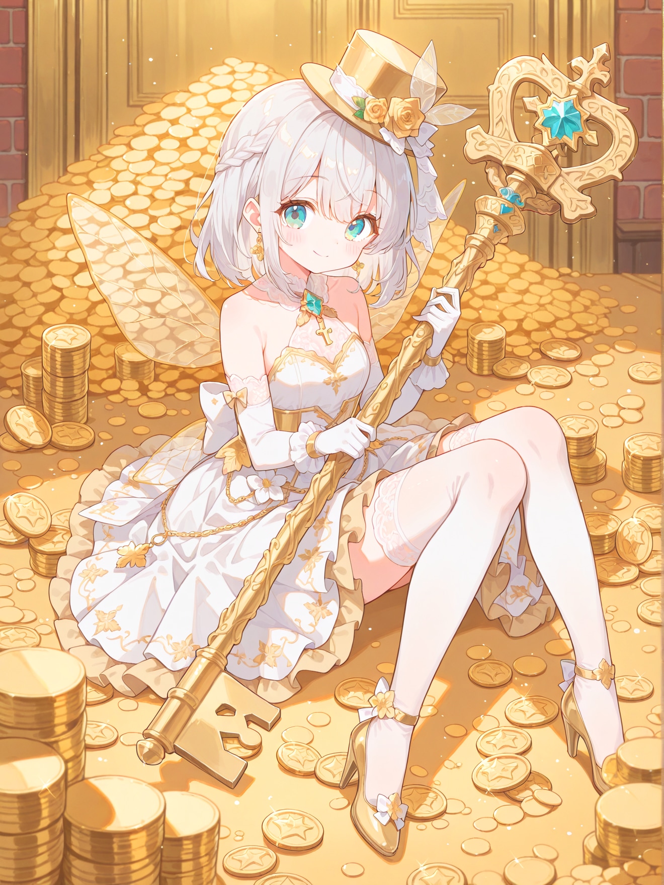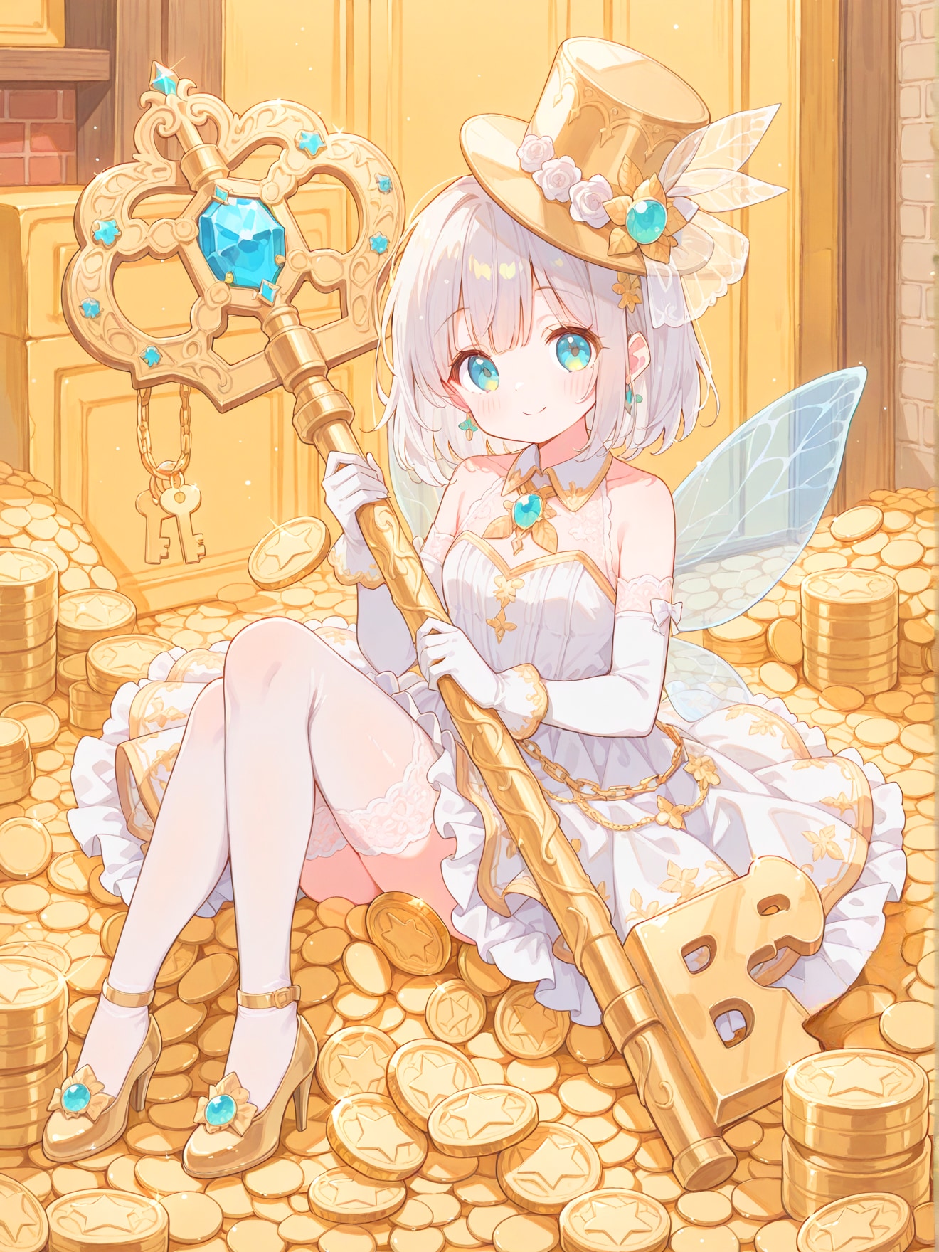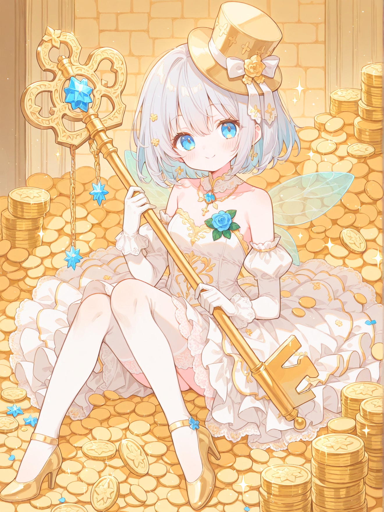 金貨で一杯の宝物庫の鍵を持ったシルクハットの妖精を作ってみました