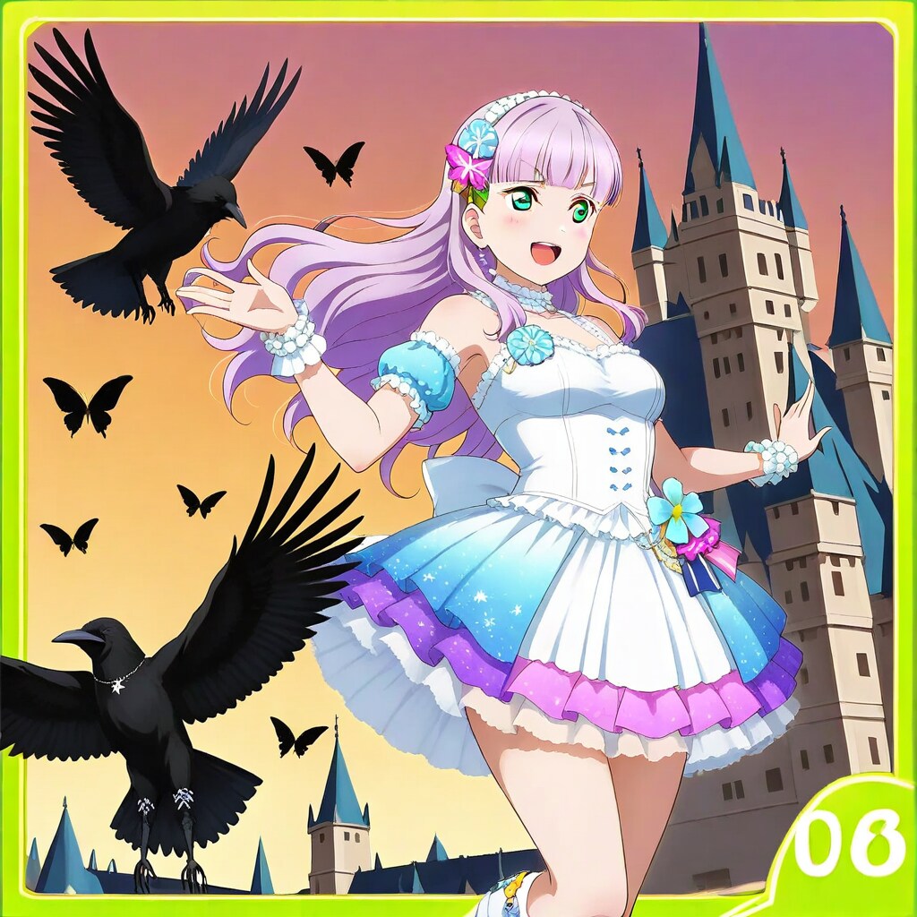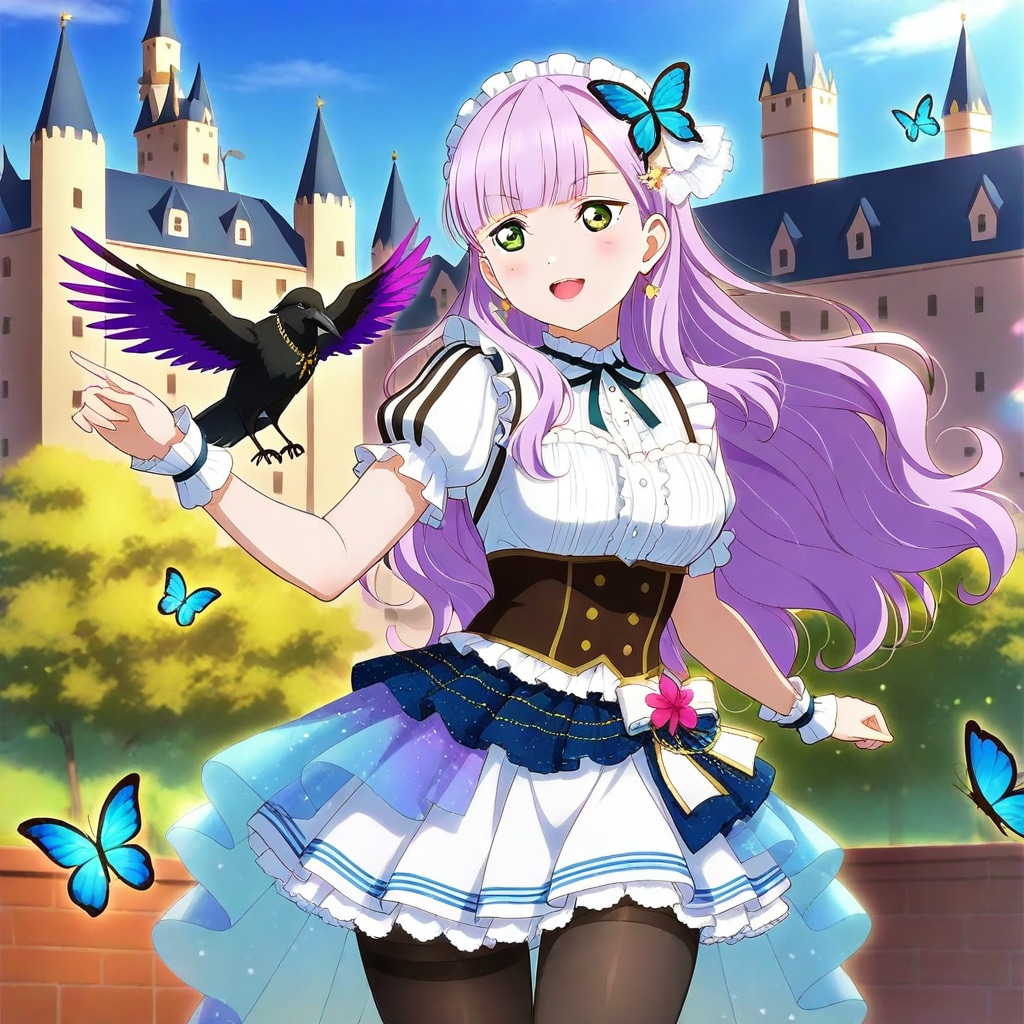 呪文にカラスアゲハをモチーフにしたスクールアイドル衣装、と入れたらアゲハも舞っていますが
