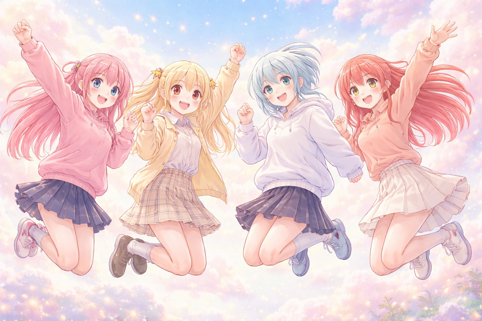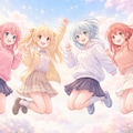 パステル調 『ぼっち・ざ・ろっく!』の結束バンド4人 きららジャンプでふくらはぎ