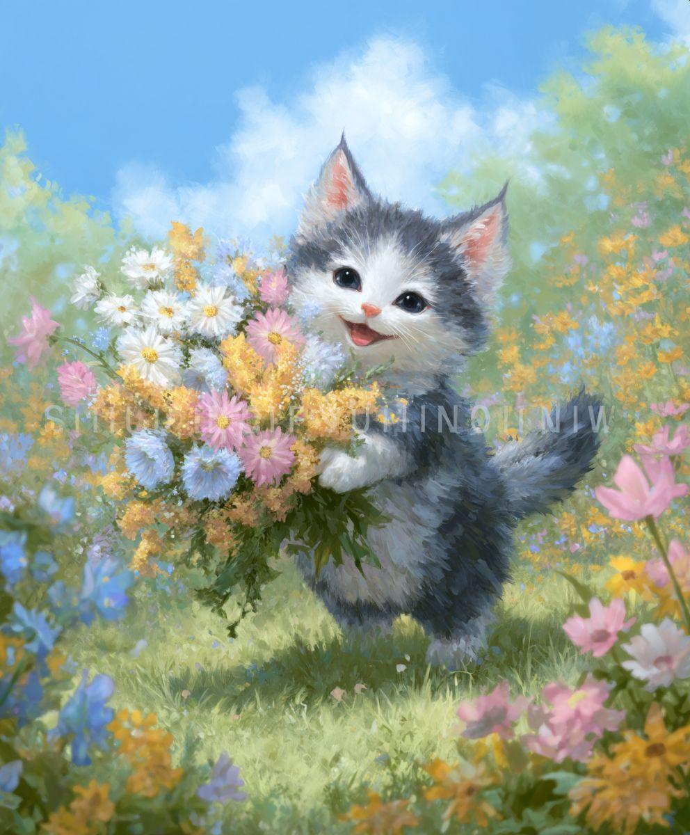 プロンプトは1枚目と2枚目のもの。なぜ文字が入っているのか謎。
