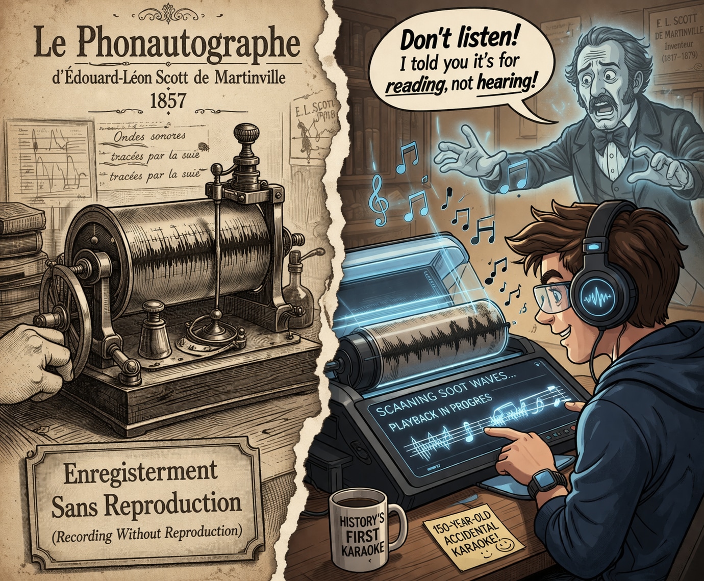 1860年4月9日。フランスの印刷職人スコット・ド・マルタンヴィルが、煤を塗った紙に「音の足跡」を刻みつけたあの日。