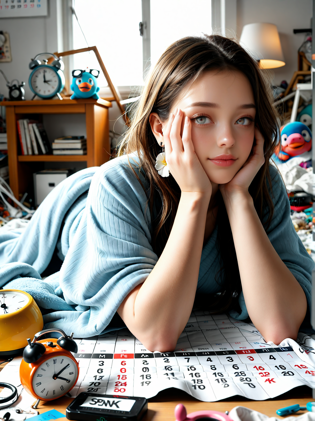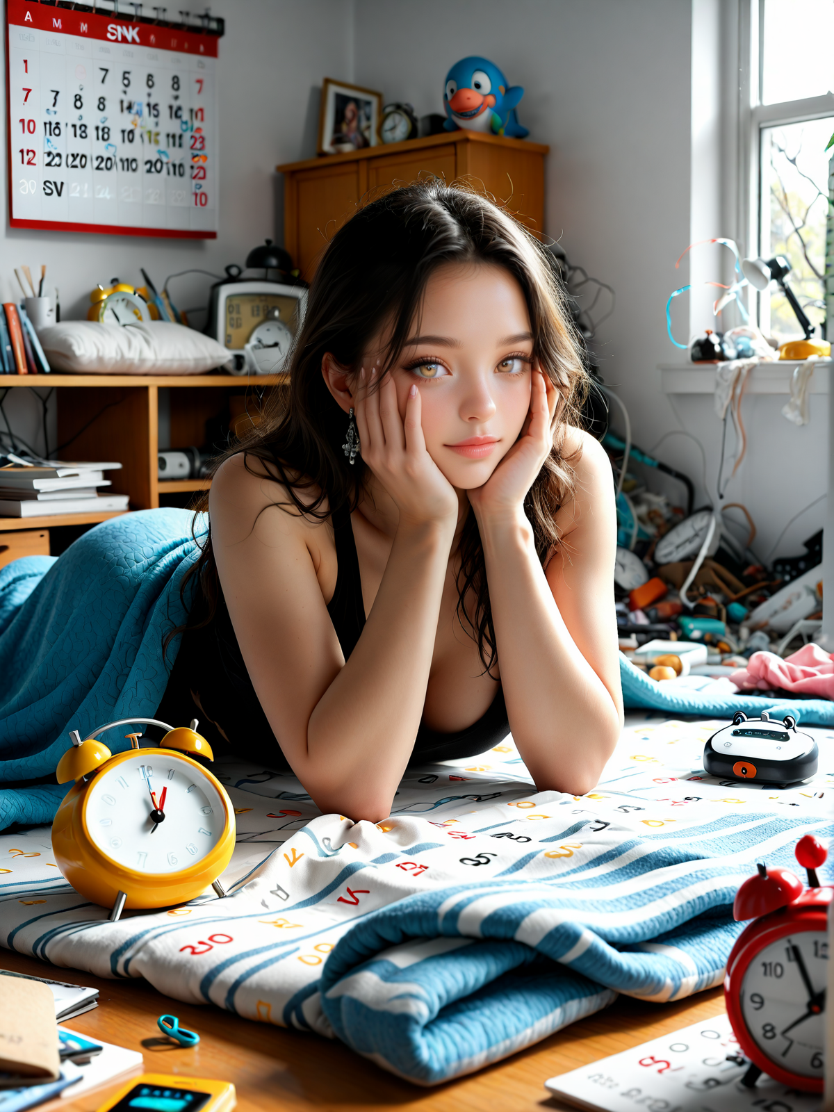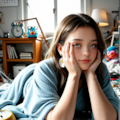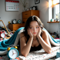 ベッド上でだらけて、やる気なーいって感じのだらけてるとか悲愴感。