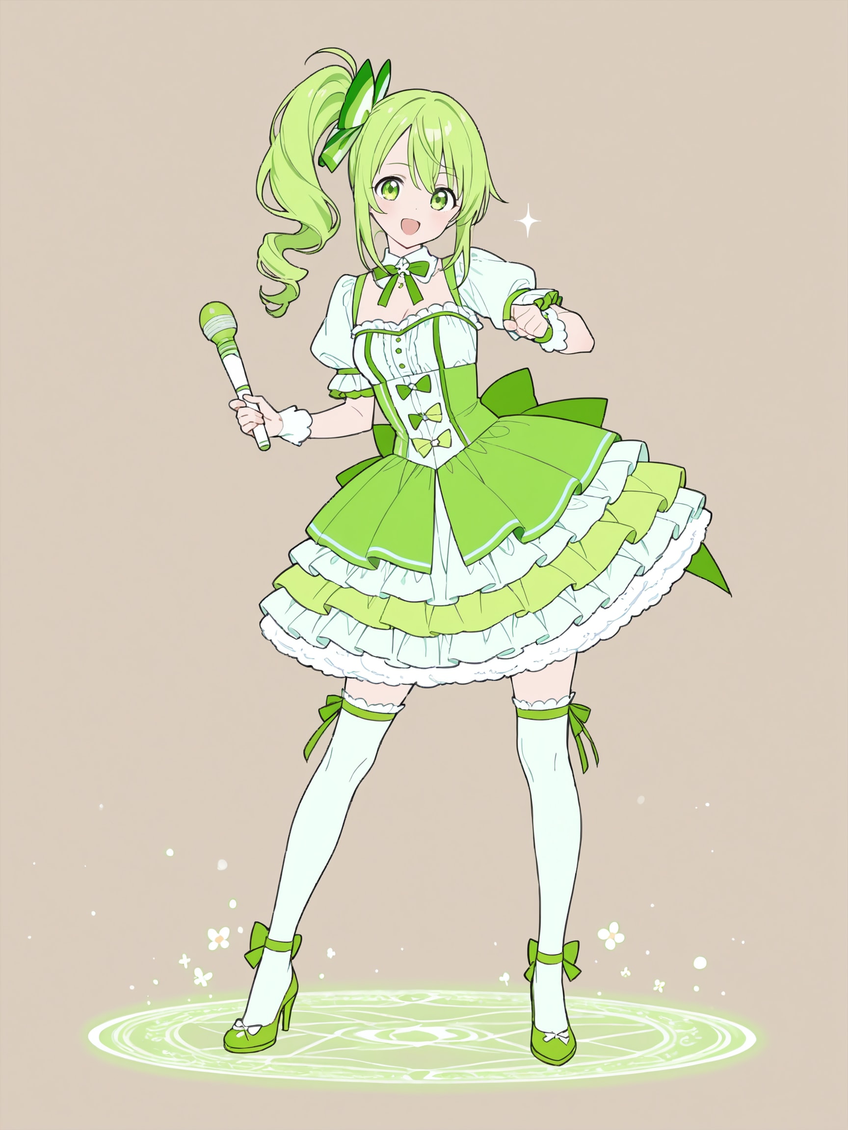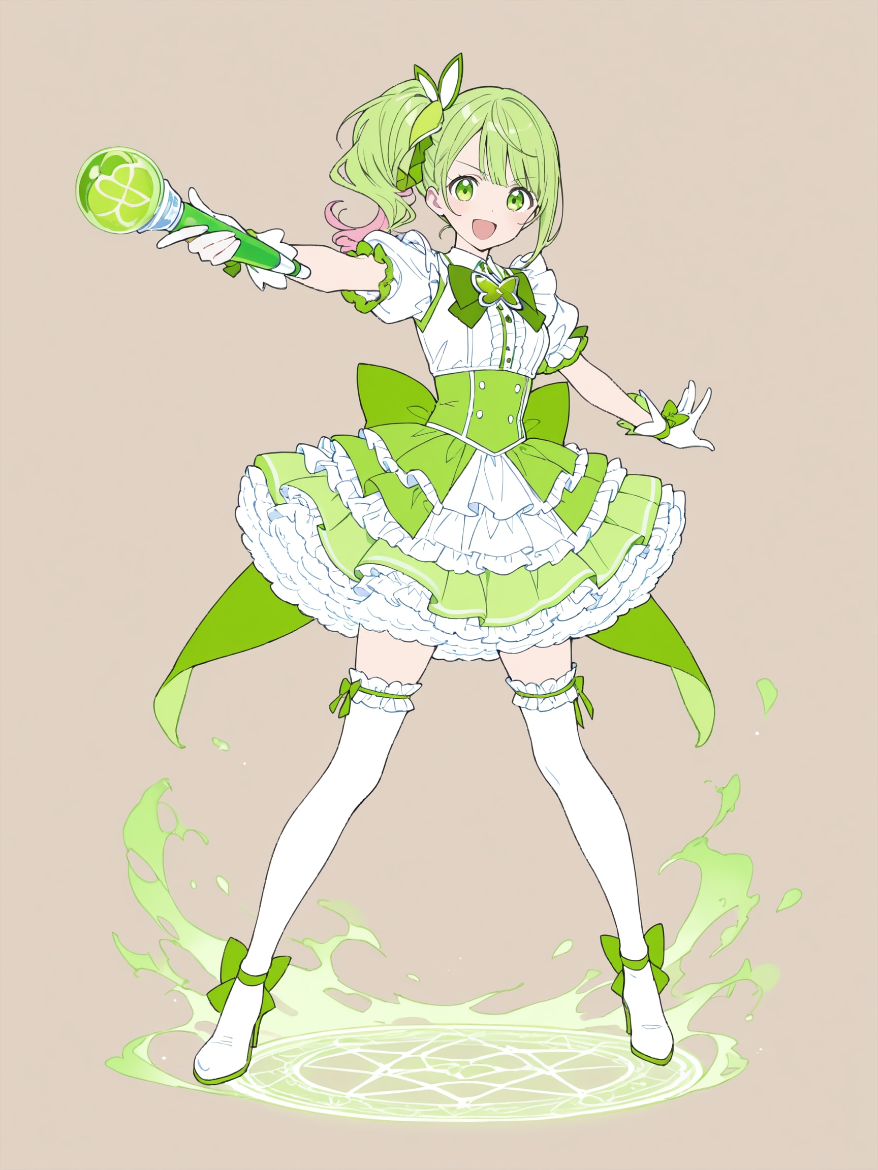 衣装のきみどりですが、サンプルの"Yellow green"では黄色と緑になってしまうので、"lime green"を指定しています。(6枚目以降)