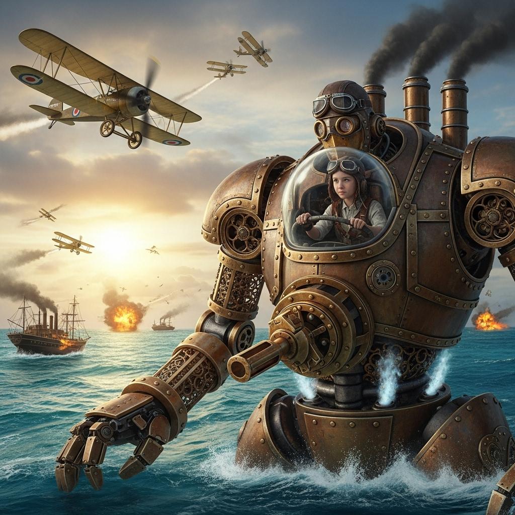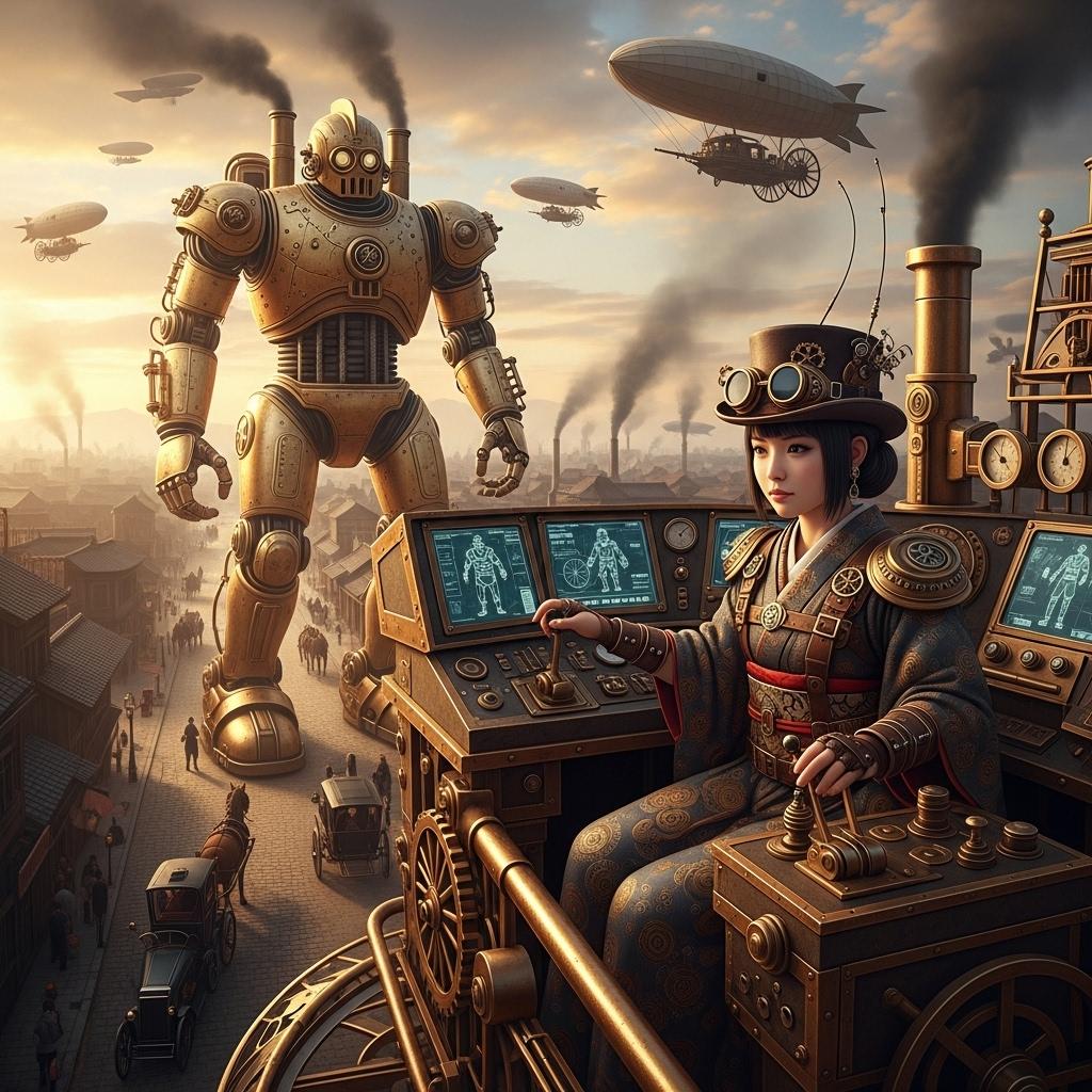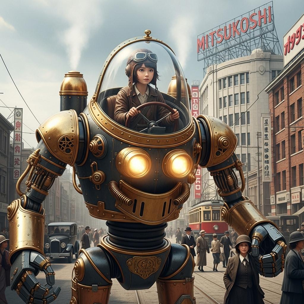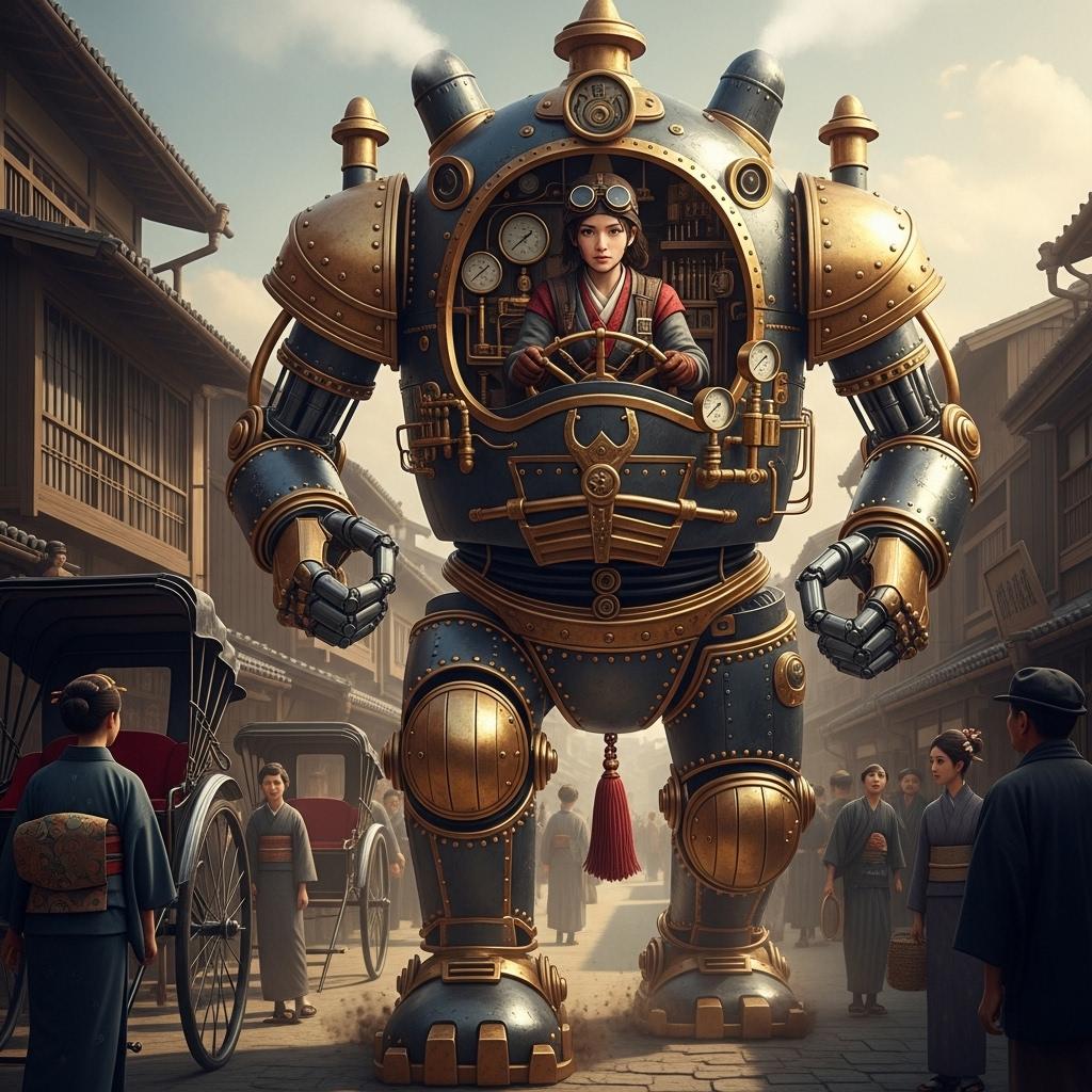 明治時代から発達した蒸気機関を中心とした文明開化は蒸気駆動のロボット"蒸気巨兵"を齎した。