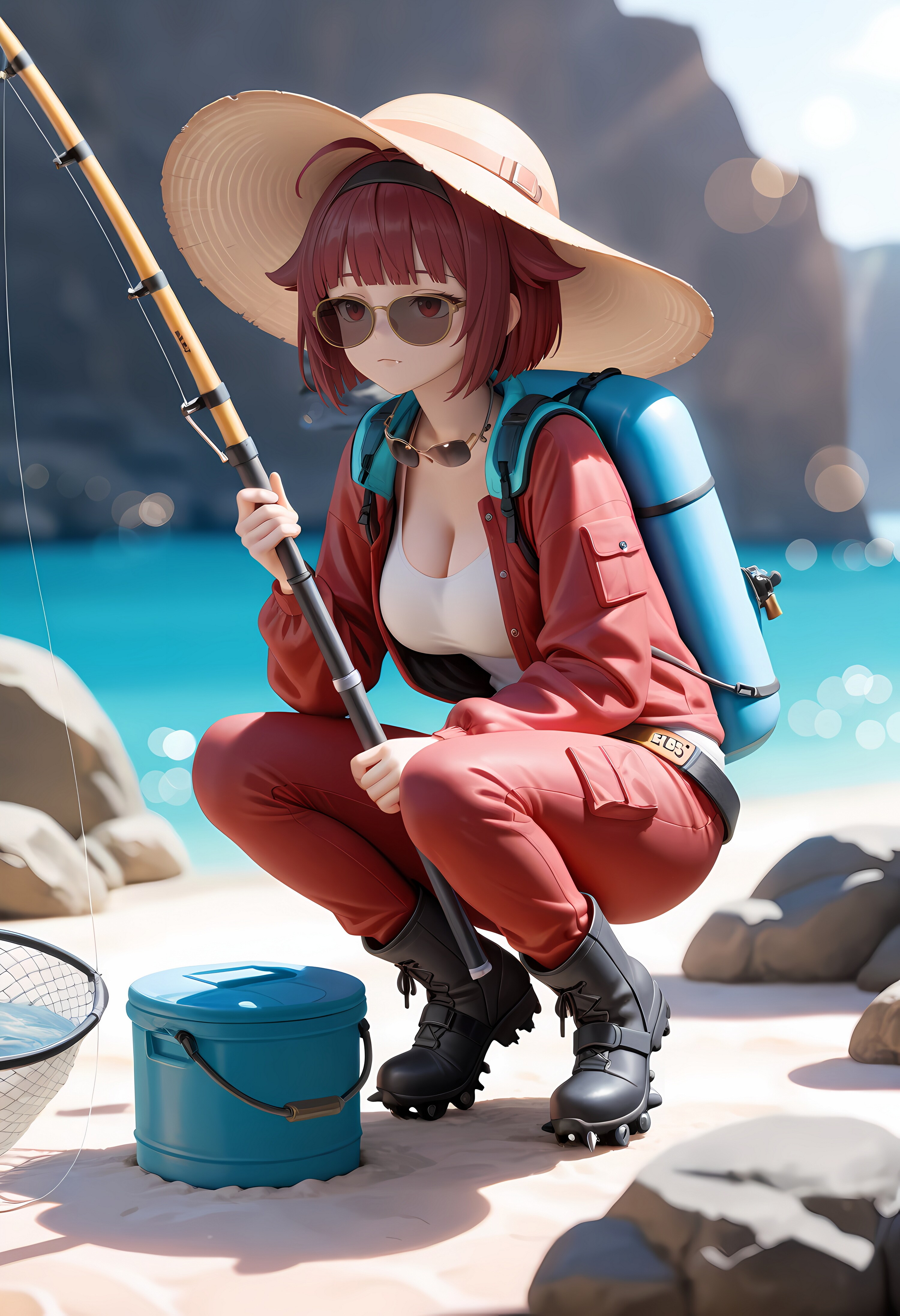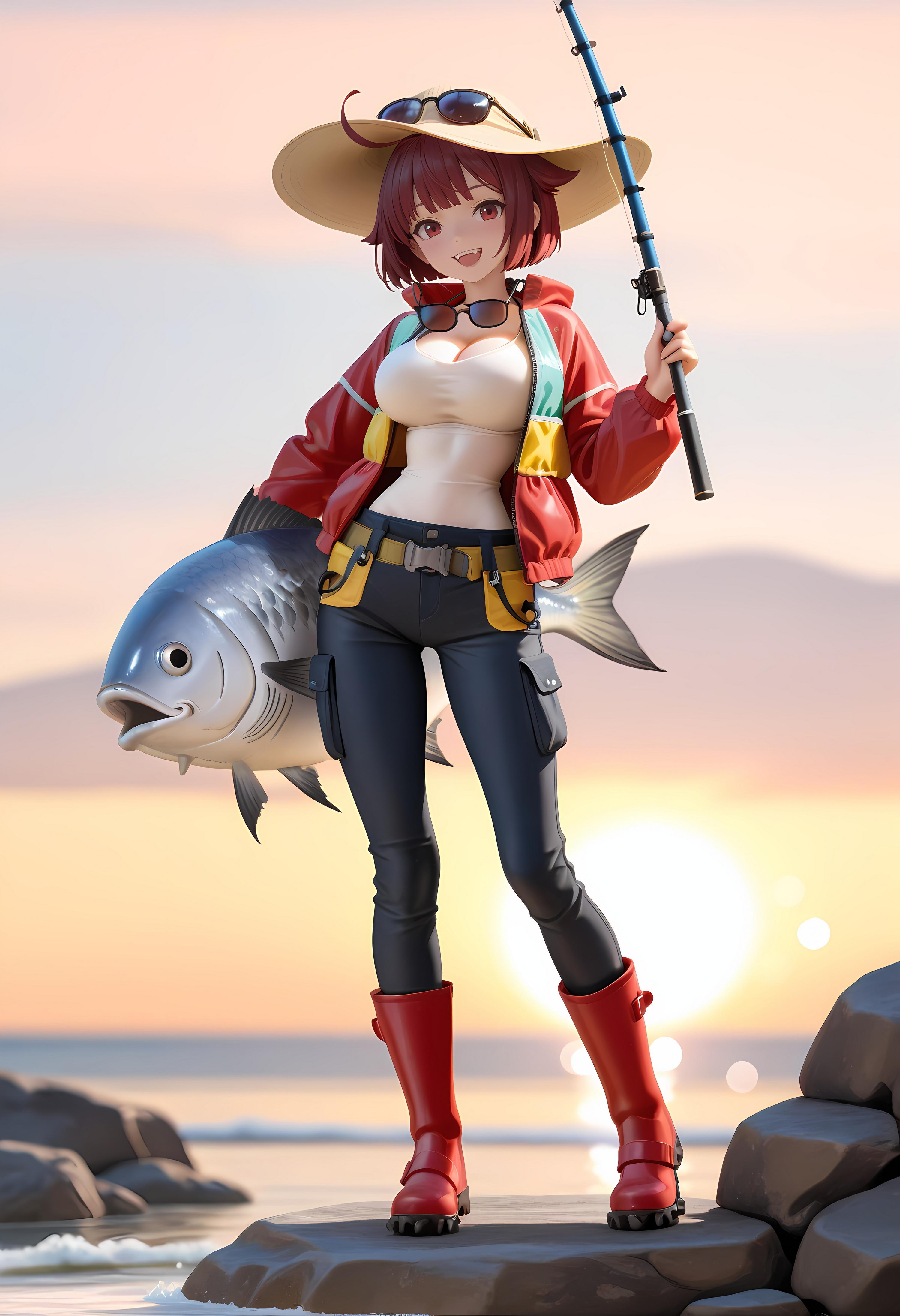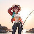 jacket partially removed, heart in eye, burnt clothes, holding fishing rod, kanji, doujin cover, pentagram, tape gag, adjusting headwear, red socks, friends, cloud print, coke-bottle glasses, oral invitation, competition school swimsuit, barbell piercing, gradient legwear, prisoner, blood on breasts, wind chime, carrying over shoulder, tape measure, flaming weapon