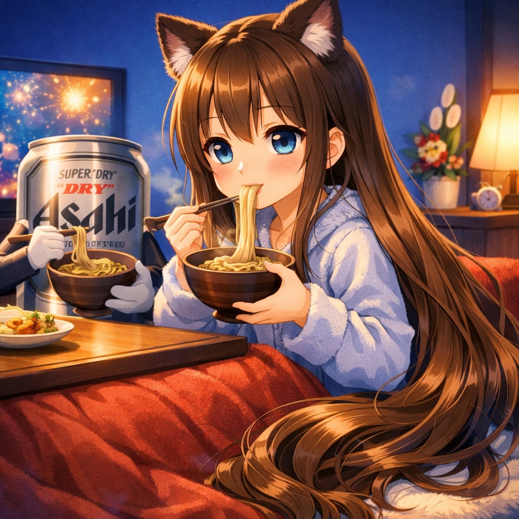 年越しそばを食べる小さな女の子