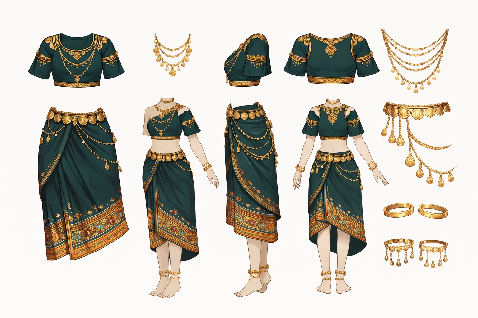 回転するたびに広がる布と金の装飾、