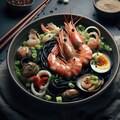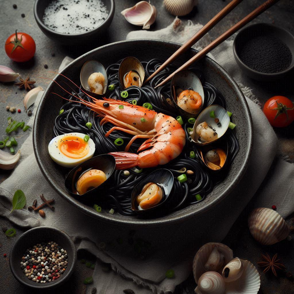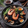 黒いseafood noodle