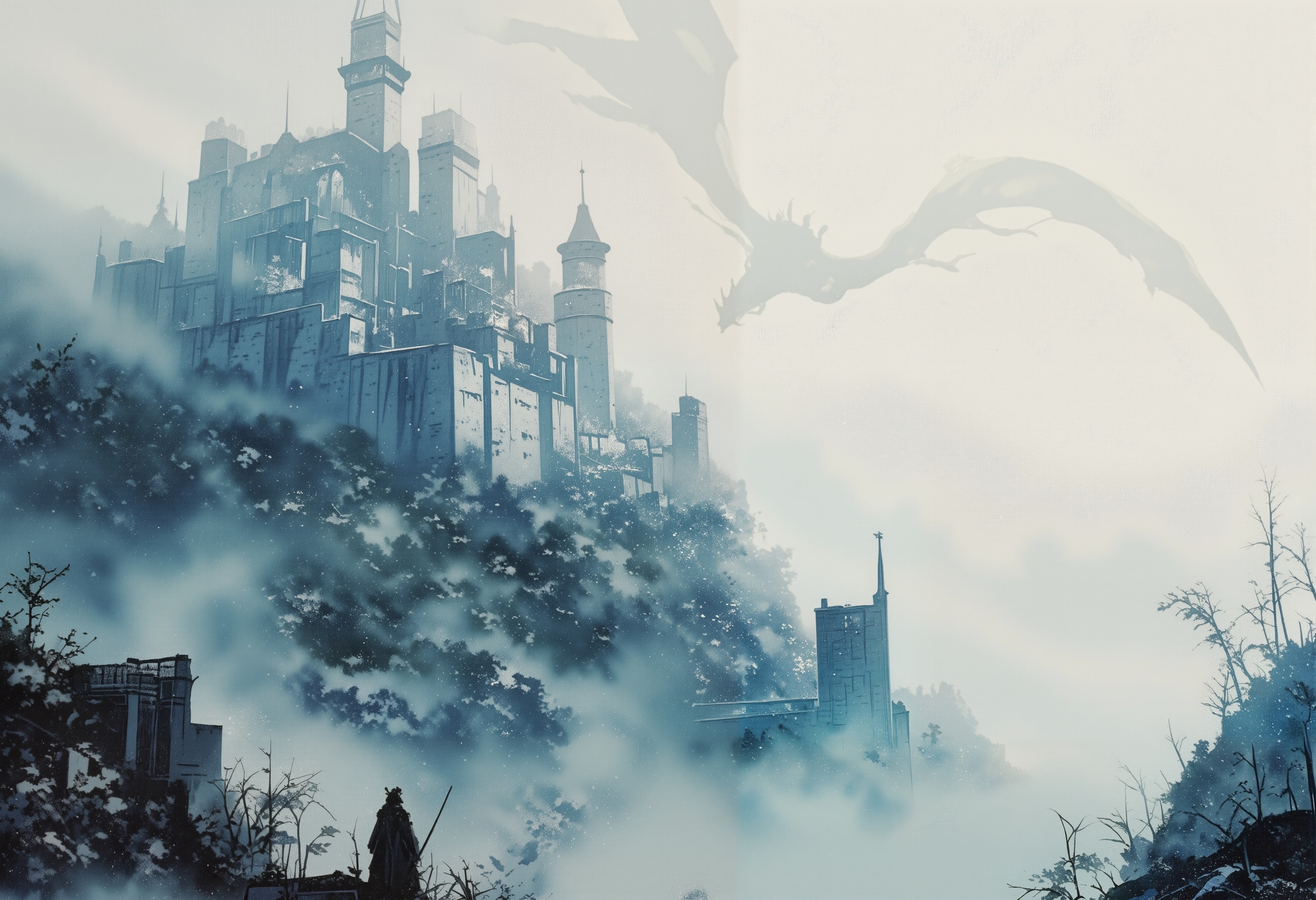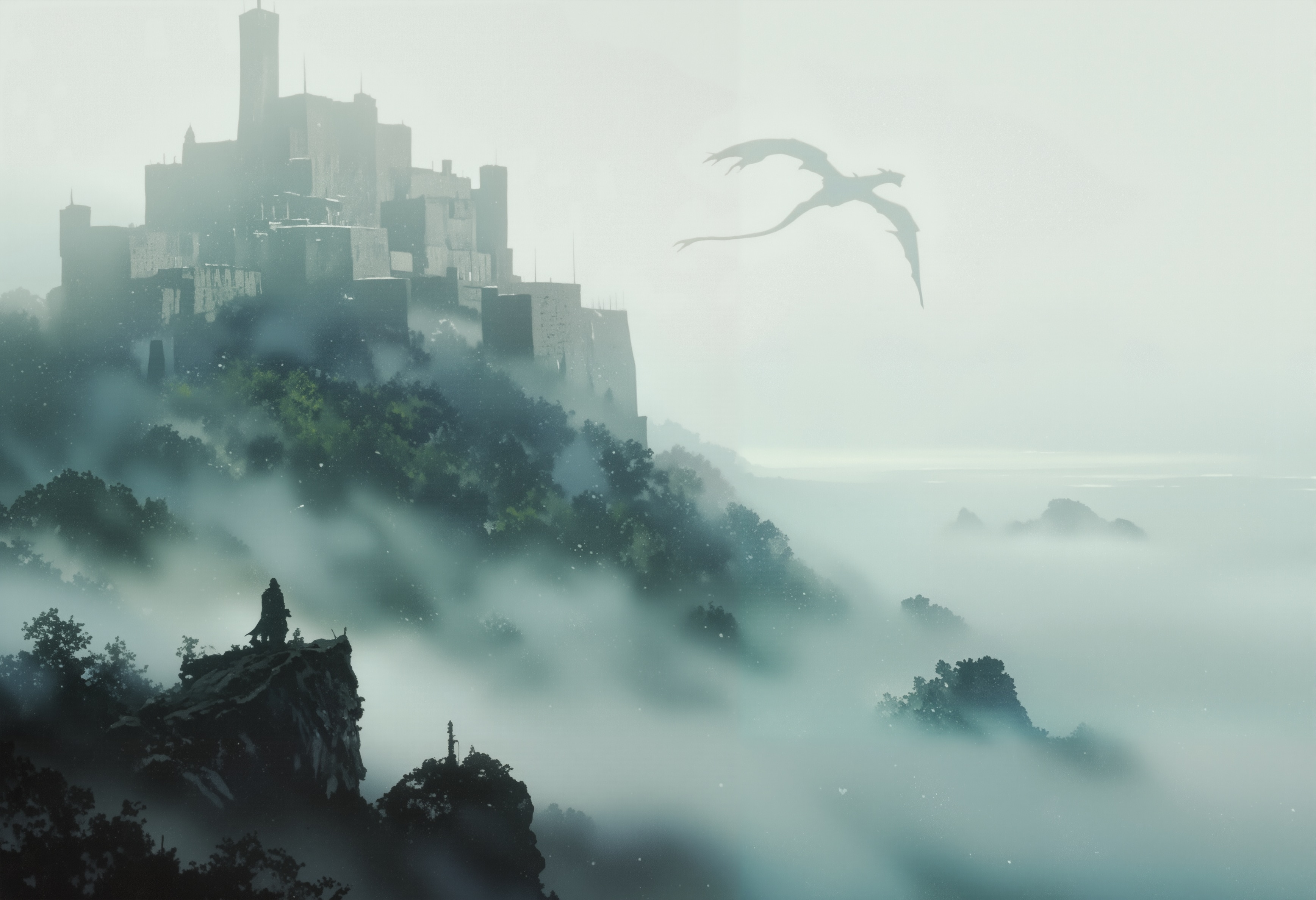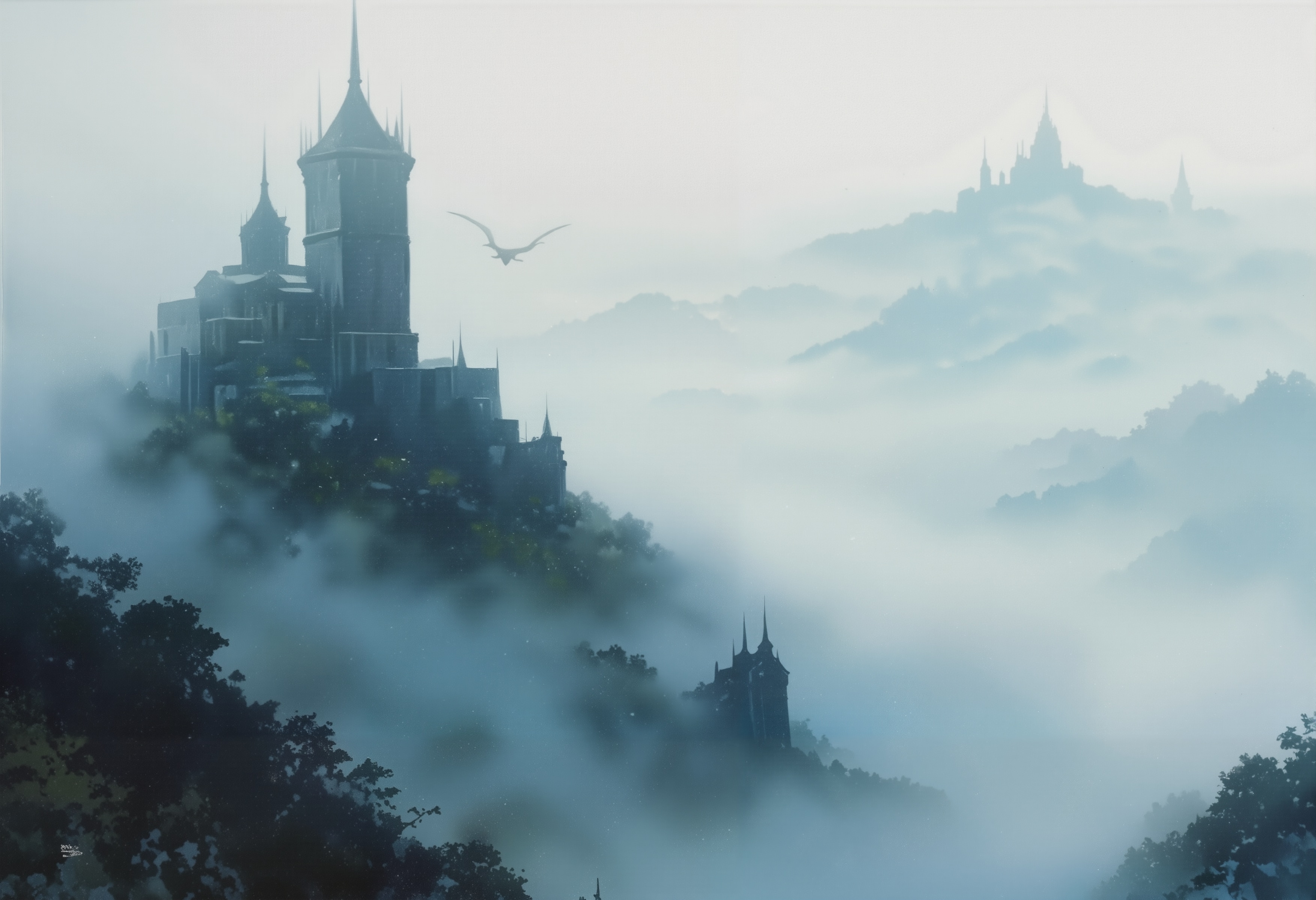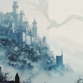 霧に包まれた城と、ミストのドラゴン