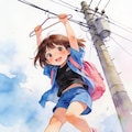 電線と少女