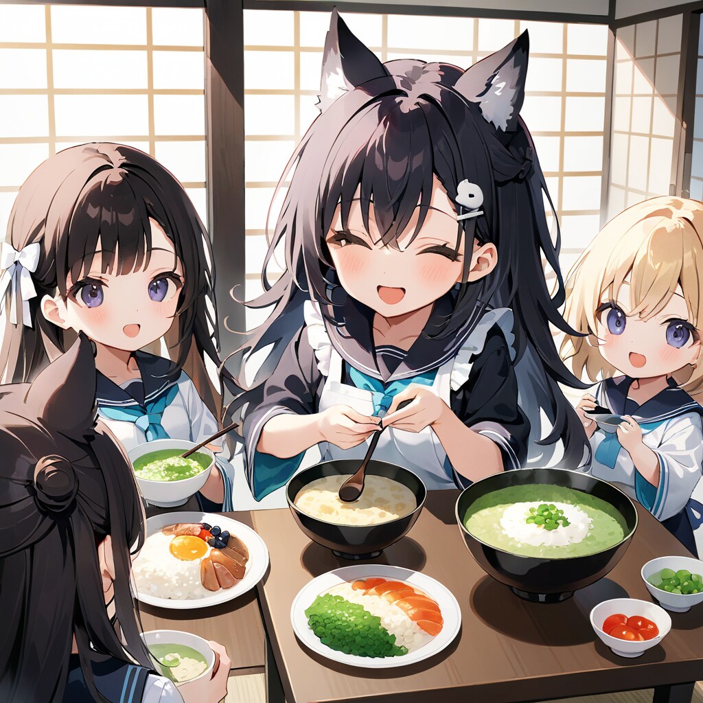 七草粥パーティーを開きましたっていう日常的な作品です。