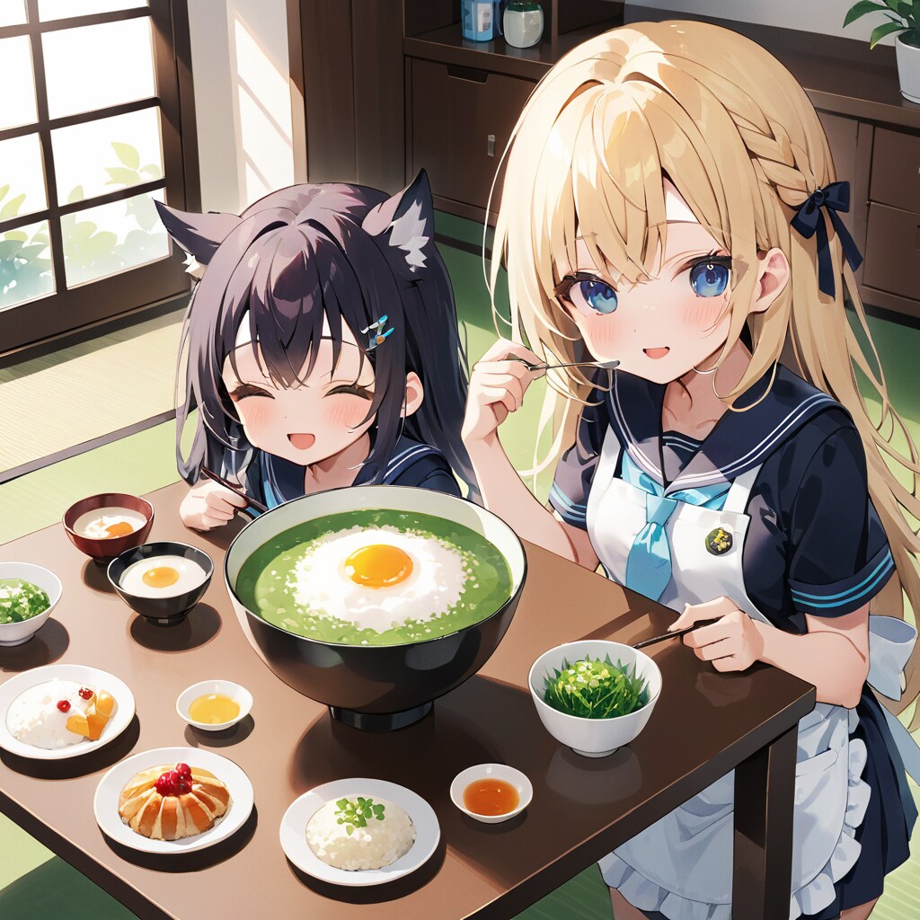▼今回は、金髪と黒髪が、七草粥を作って、