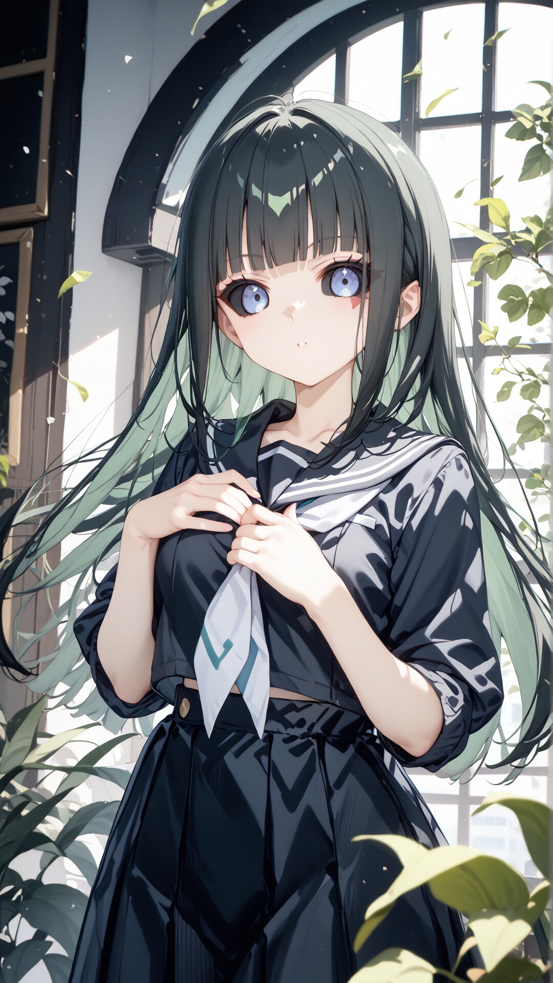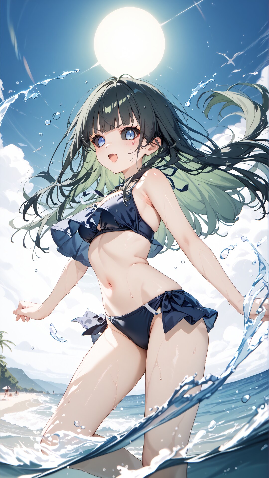 推奨プロンプト:blue eyes, long hair, black hair, colored sclera, green hair, black sclera,