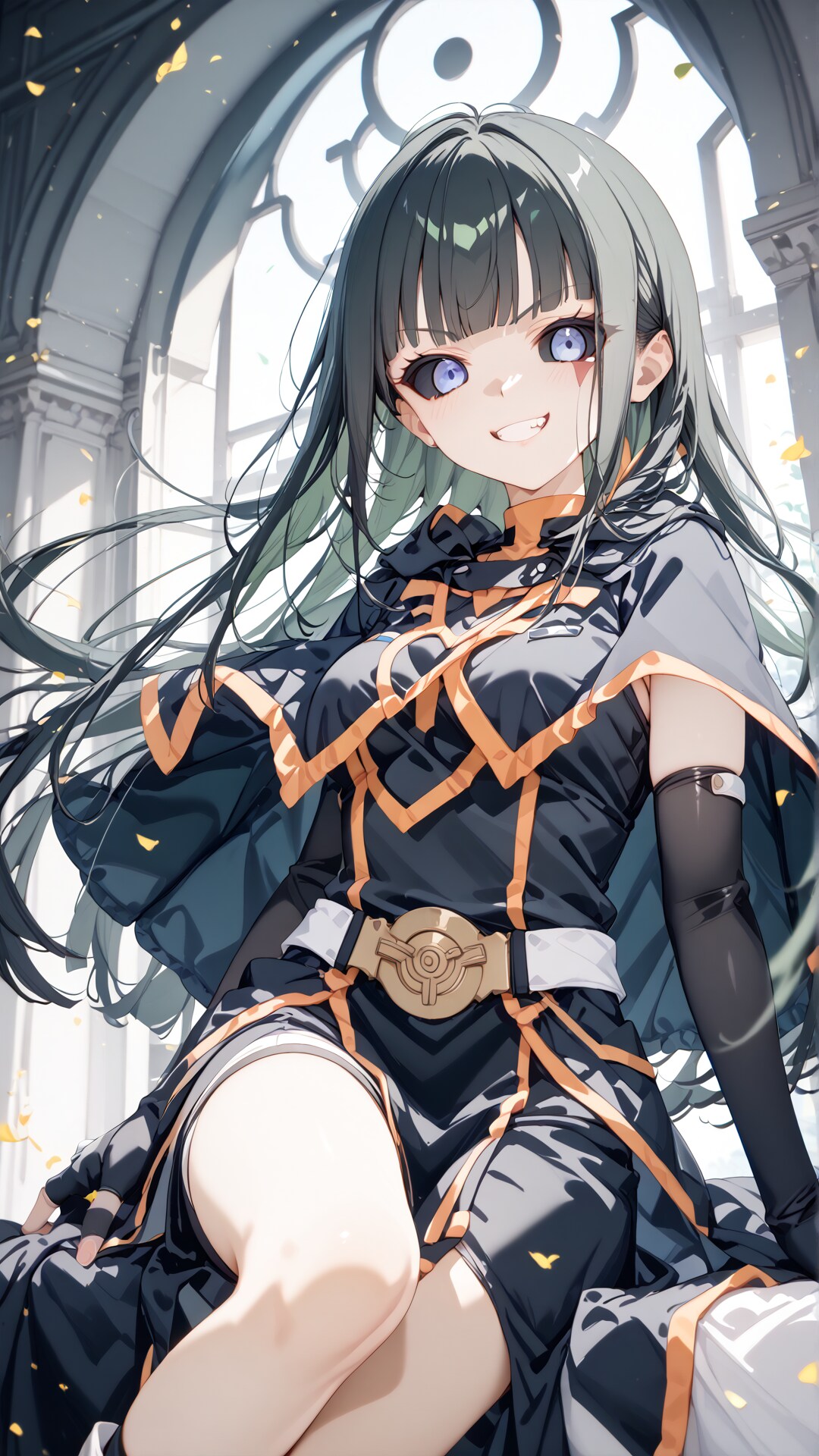 デフォ服装:gloves, elbow gloves, black gloves, capelet, black capelet, fingerless gloves,