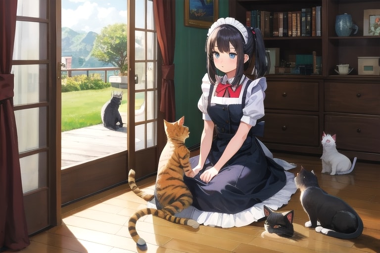 4枚目 1girl,cat,maid