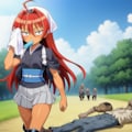 jacket partially removed, heart in eye, burnt clothes, holding fishing rod, kanji, doujin cover, pentagram, tape gag, adjusting headwear, red socks, friends, cloud print, coke-bottle glasses, oral invitation, competition school swimsuit, barbell piercing, gradient legwear, prisoner, blood on breasts, wind chime, carrying over shoulder, tape measure, flaming weapon