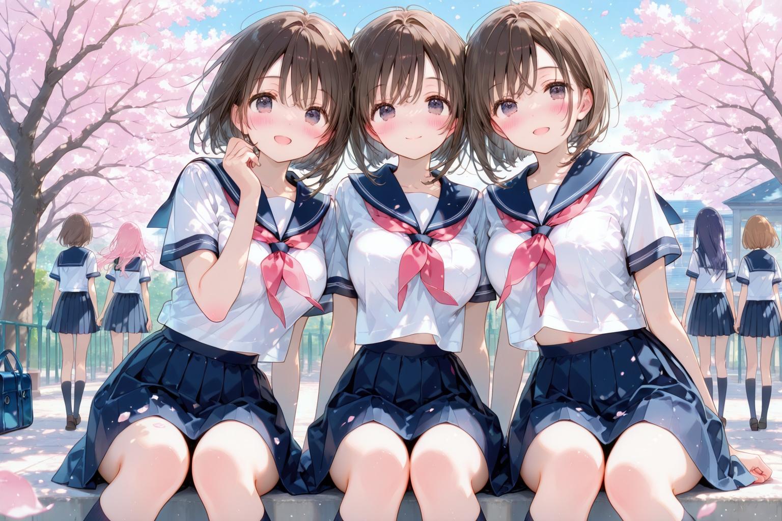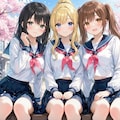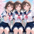 二枚目がナノバナナで背景と学生の髪型を変更、袖を長袖にした画像。