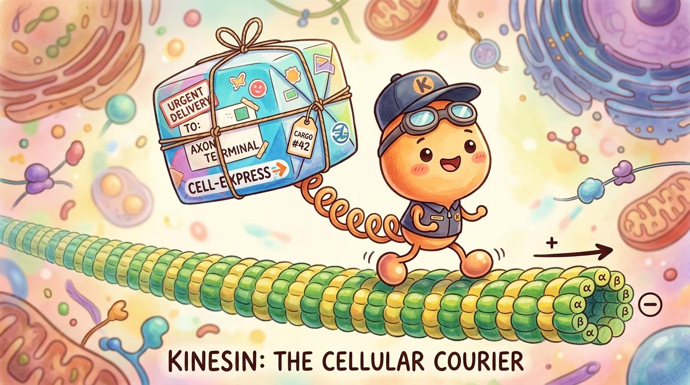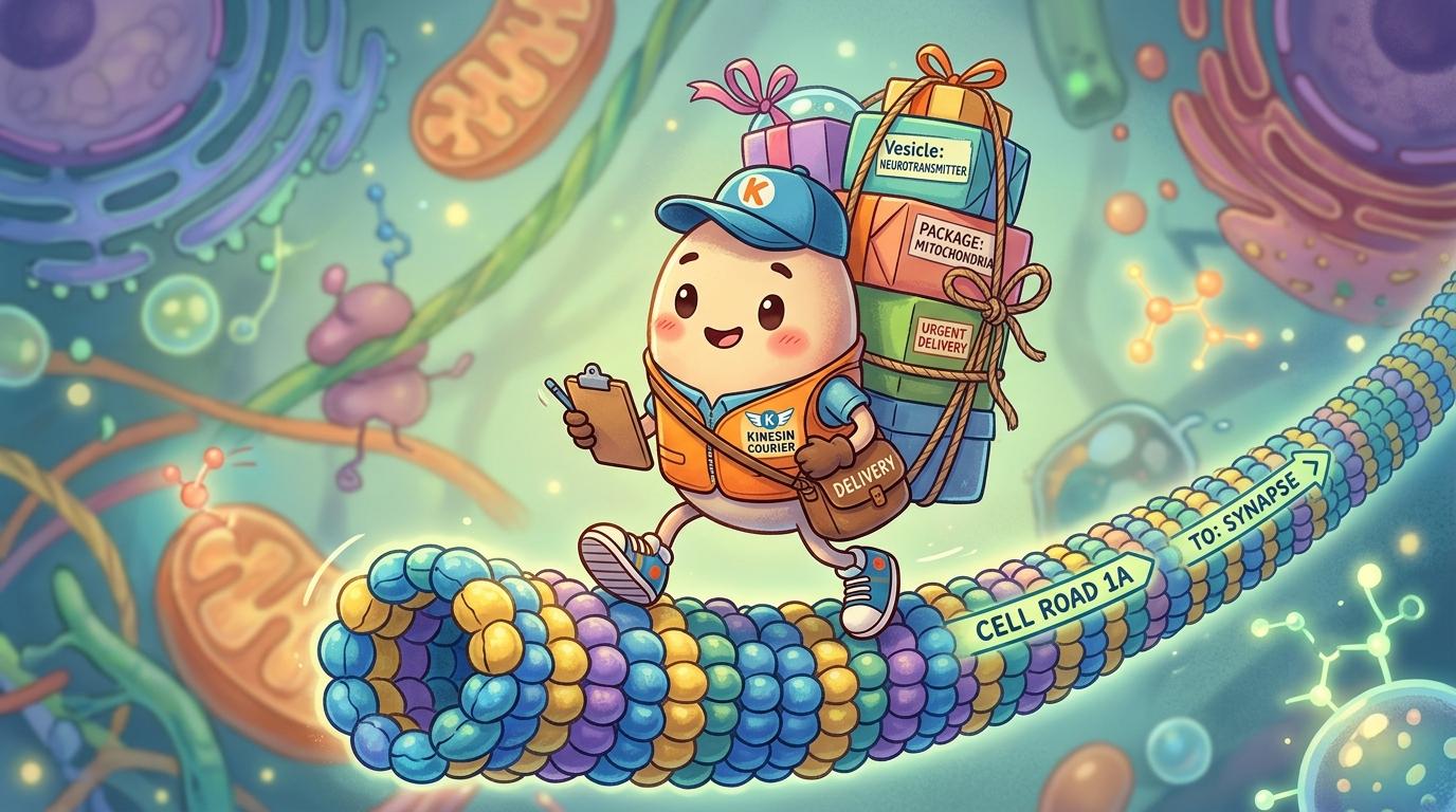 細胞という広い街の中で、毎日せっせと荷物を運んでいるのがキネシンくんです。