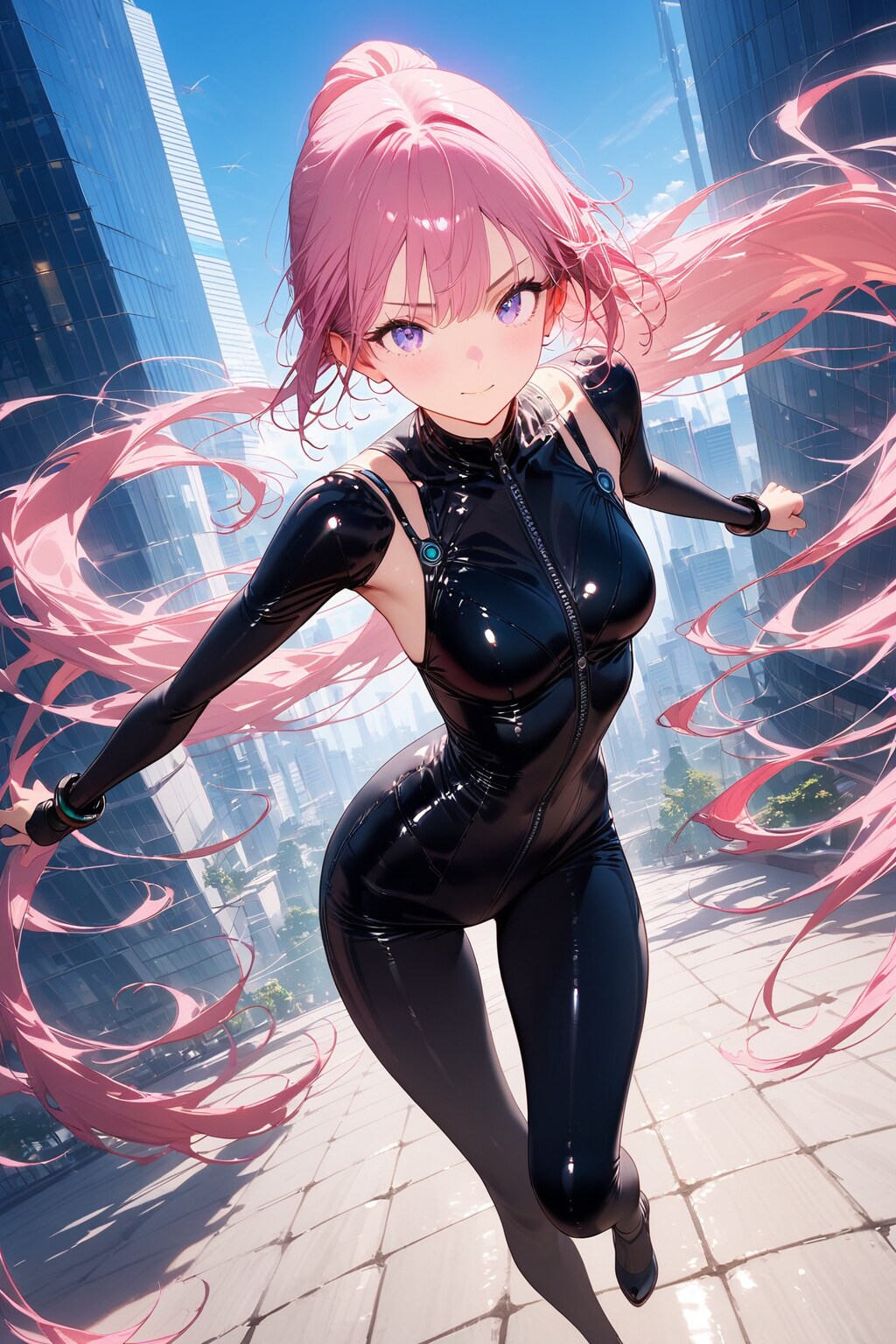 誰にも頼れない、孤高のミッション。🌃ピチピチの黒ラテックススーツと、風になびくピンクロングヘアが夜空に映えるでしょ?💖キリッとした表情は、もうモード全開って感じ!この街の平和は、たった一人の私にかかってる。ちょっと寂しいけど、カッコよさは誰にも負けない!✨私の瞳は、全てを見通すパープル。さあ、夜の帳が降りる前に、ケリをつけなきゃ。