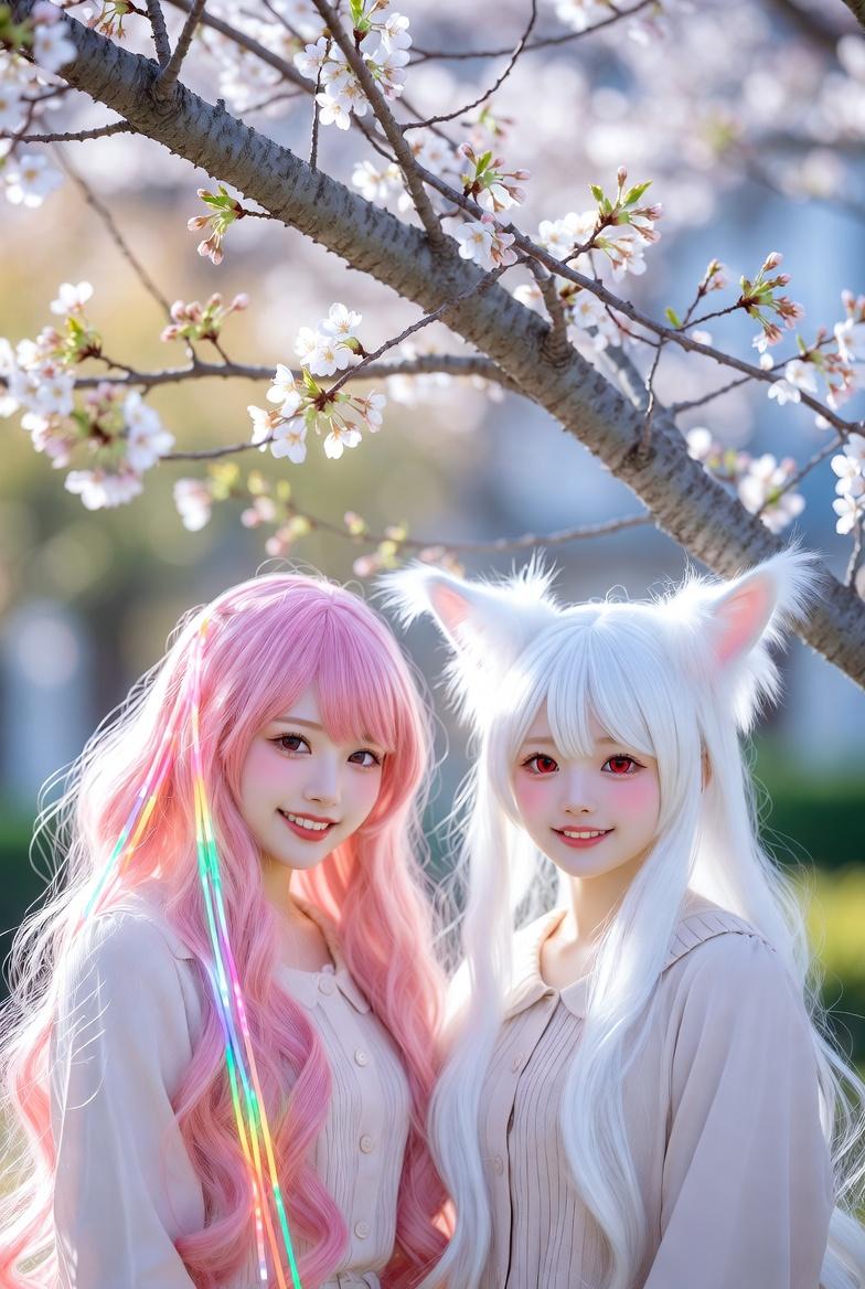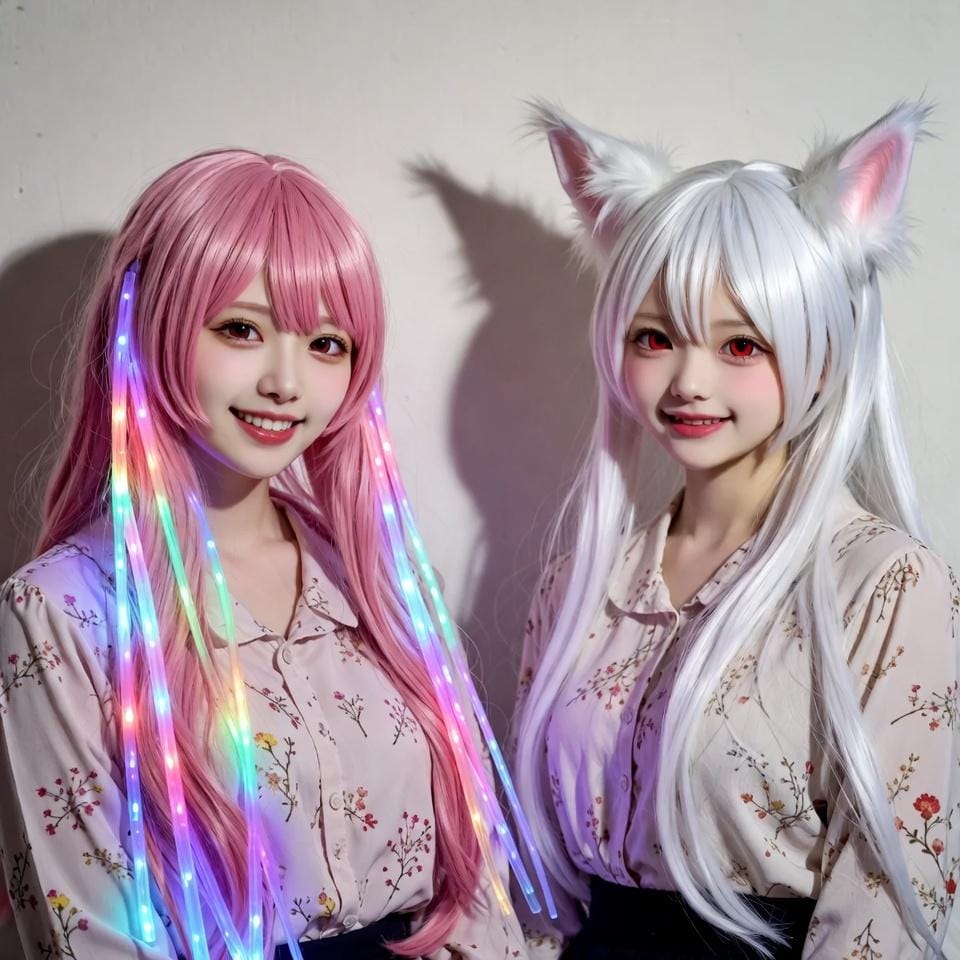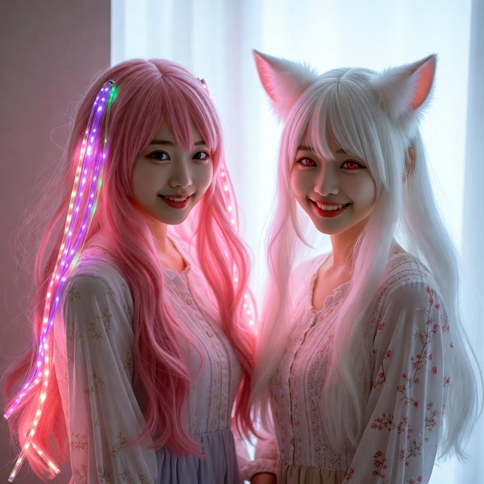 サイバーピンクと雪狐。Dalleを使わなくても許せるレベルかなぁ~