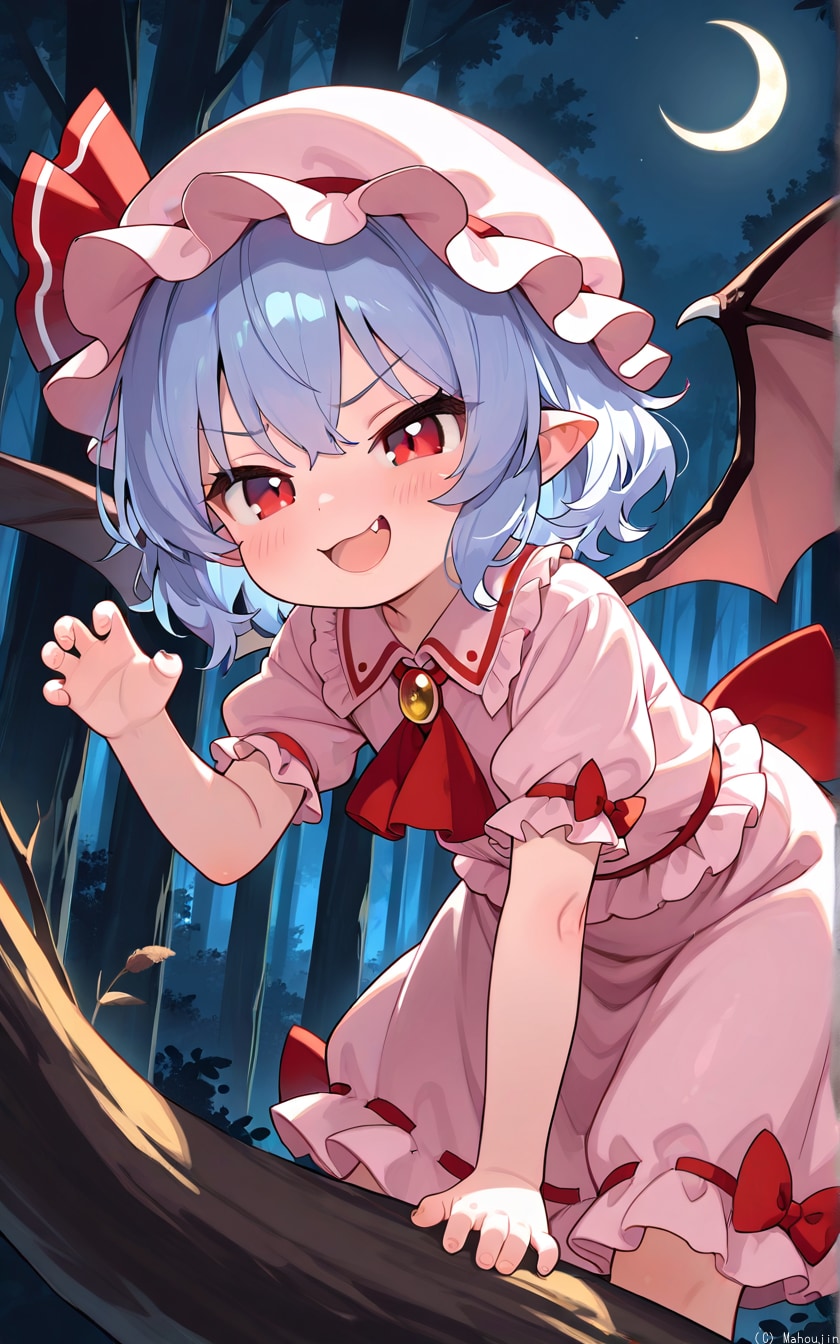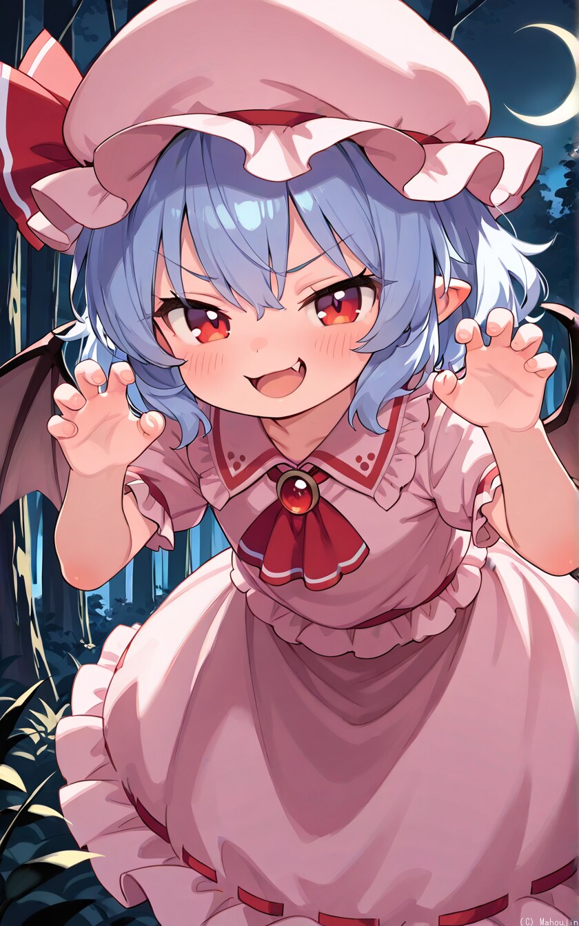 パチュリー「嘘ね、AIピクターズのお題が「牙」で取り敢えずレミィを出したけど何も背景が思いつかなくてテキトー言っているだけだわ」