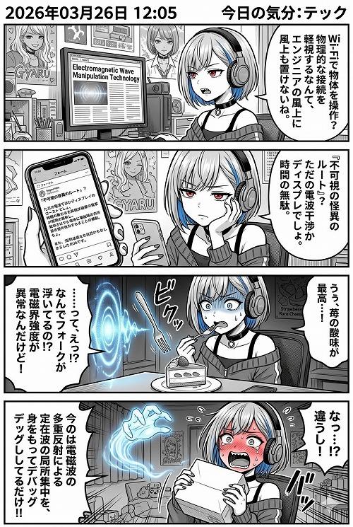 毎日漫画2026/3/26分 2026/03/27 使用したAI Gemini #Gemini #毎日漫画 修正前バージョンなのでセリフ等文字崩れが多々あります。 呪文 入力なし Ame_no_Uzume_no_Mikoto 1,403 投稿 フォロー 152 フォロワー 331 2025/5/8頃AI利用開始。(2026/2/12追記)Xのアカウントが完全に復旧不可能な凍結されました。(2026/3/26追記)4月末の引っ越しに向けて新居との移動やらいろんな手続きやらで毎日漫画等の定期投稿が出来ない可能性があります。#天鈿女命#女神#和風#和服 Ame_no_Uzume_no_Mik…さんの他の作品 Ame_no_Uzume…さんの他の作品 毎日漫画2026/3/26分 Ame_no_Uzume_no_Mikoto 毎日漫画2026/3/25分 Ame_no_Uzume_no_Mikoto わけわか!重力による発電システムのある世界で Ame_no_Uzume_no_Mikoto 法曹界の偉人伝 Ame_no_Uzume_no_Mikoto ミュージックの日!音を纏うウチら、バイブス全開案件 Ame_no_Uzume_no_Mikoto 毎日漫画2026/3/26分 Ame_no_Uzume_no_Mikoto 毎日漫画2026/3/25分 Ame_no_Uzume_no_Mikoto わけわか!重力による発電システムのある世界で Ame_no_Uzume_no_Mikoto 法曹界の偉人伝 Ame_no_Uzume_no_Mikoto ミュージックの日!音を纏うウチら、バイブス全開案件 Ame_no_Uzume_no_Mikoto わけわか!ただの割り込み Ame_no_Uzume_no_Mikoto