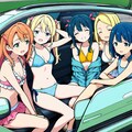 jacket partially removed, heart in eye, burnt clothes, holding fishing rod, kanji, doujin cover, pentagram, tape gag, adjusting headwear, red socks, friends, cloud print, coke-bottle glasses, oral invitation, competition school swimsuit, barbell piercing, gradient legwear, prisoner, blood on breasts, wind chime, carrying over shoulder, tape measure, flaming weapon