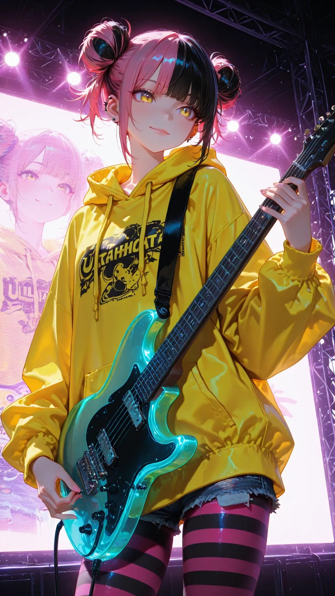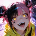 ツートーンお団子ヘアーと金目が特徴かなー