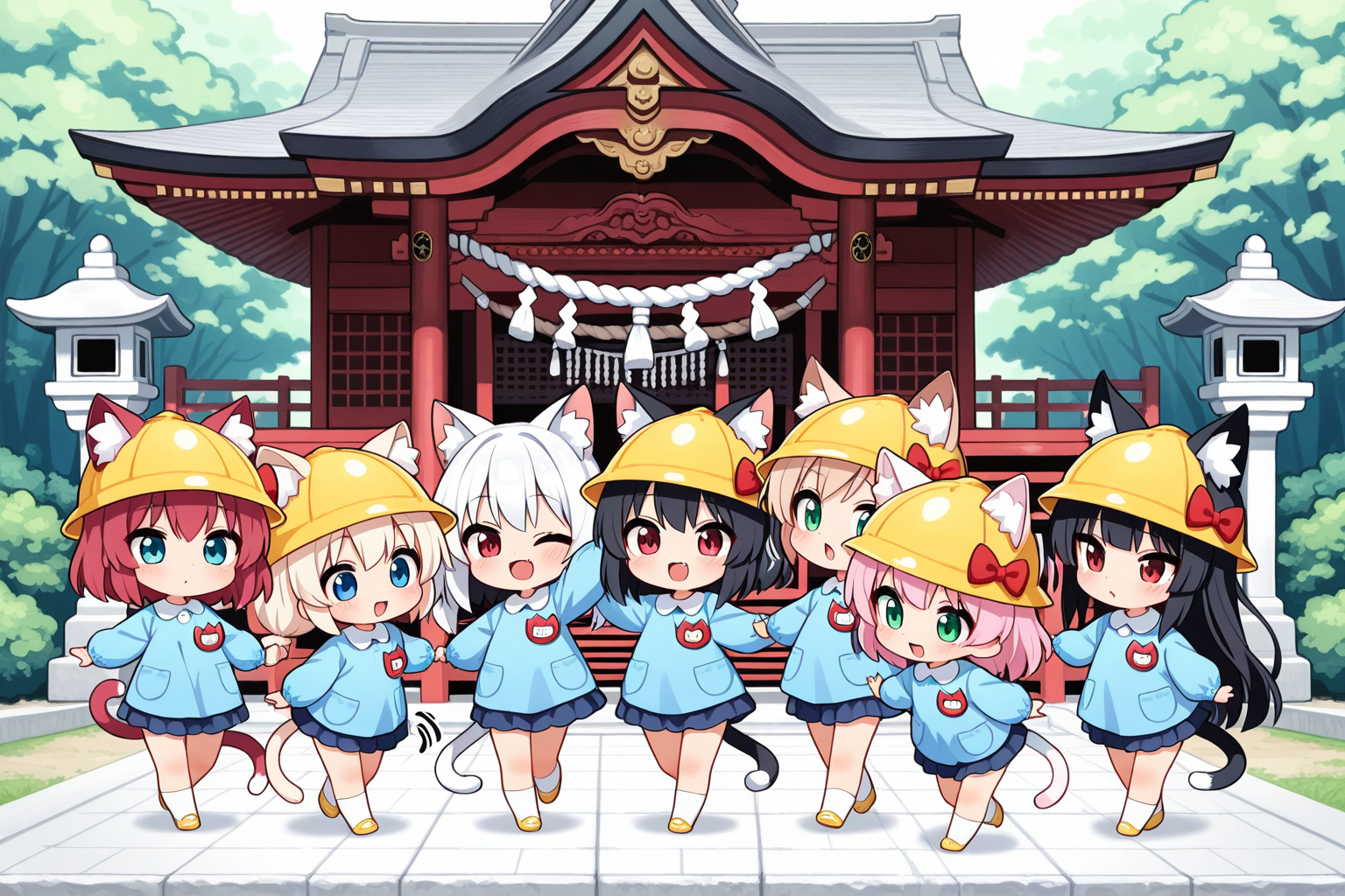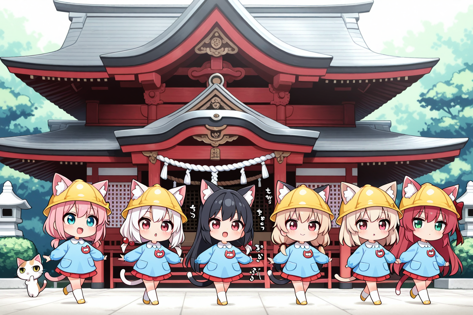 ねこみみようちえん、みんなではつもうで!!