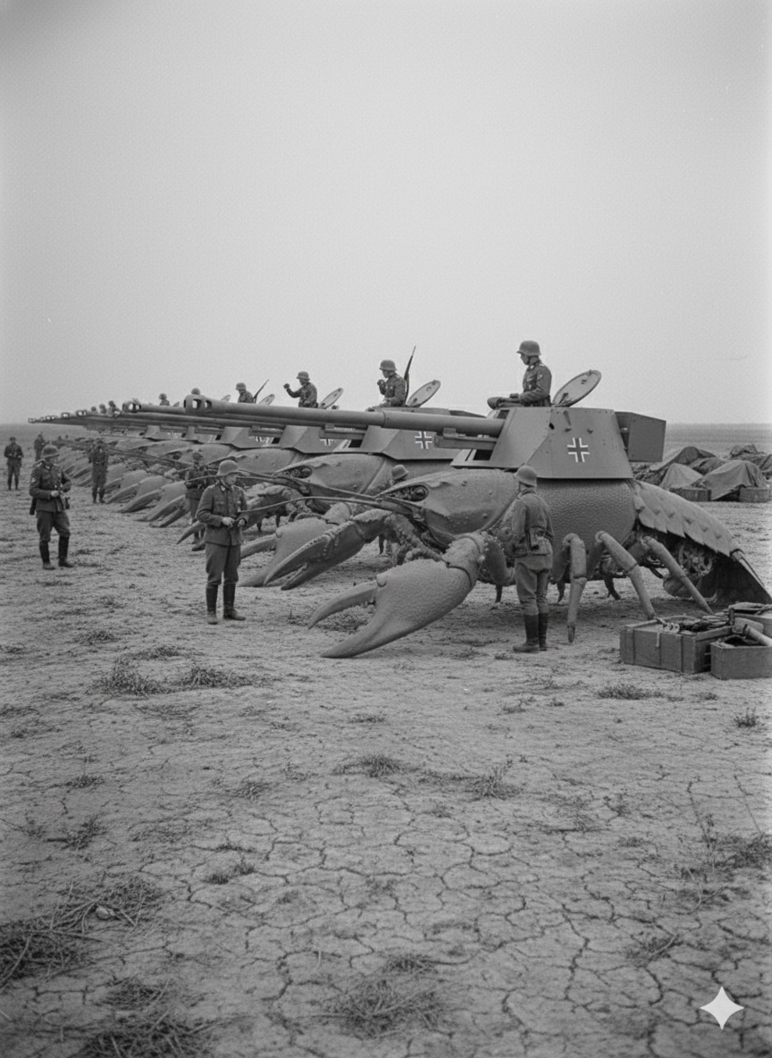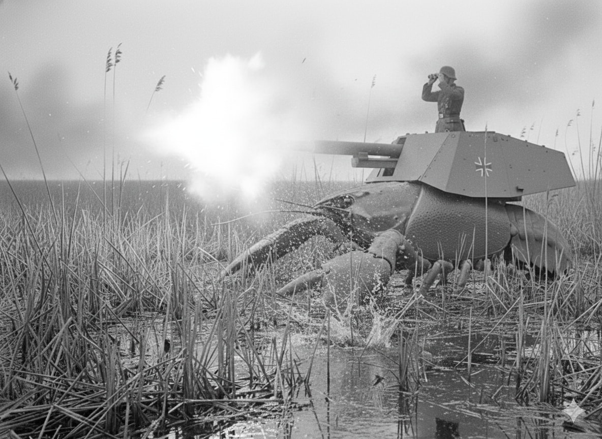 1941年のバルバロッサ作戦(独ソ戦)開始以降、ドイツ軍はロシアの泥に苦しめられてきた。そこで無限軌道(キャタピラ)を凌駕する悪路走破力が求められた結果、巨大なザリガニに野砲を背負わせるという一見突拍子もないプランが採用された。