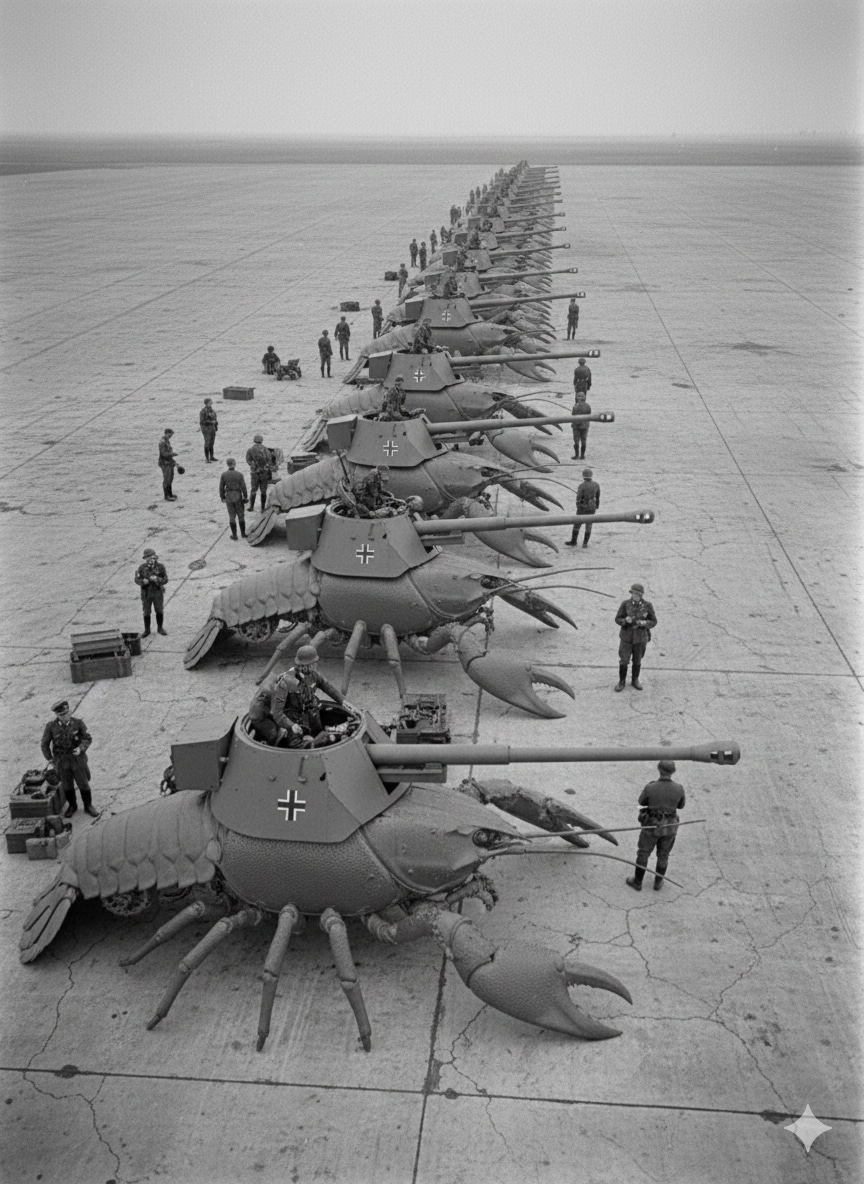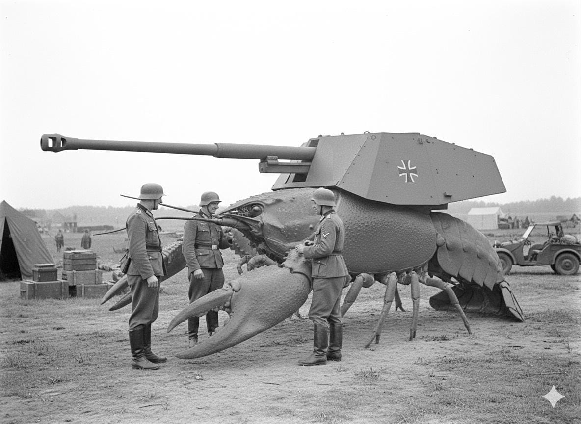 まず土台となるザリガニだが、これはナチスの科学力により遺伝子操作された巨大なザリガニの繁殖に成功したことで実現された。このザリガニには神経節に直接電極が埋め込まれており、動く、止まる、曲がるなどの簡単な指令(操作)が可能だった。