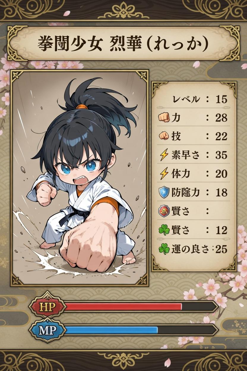 デフォルメカラテガールのステータス表示