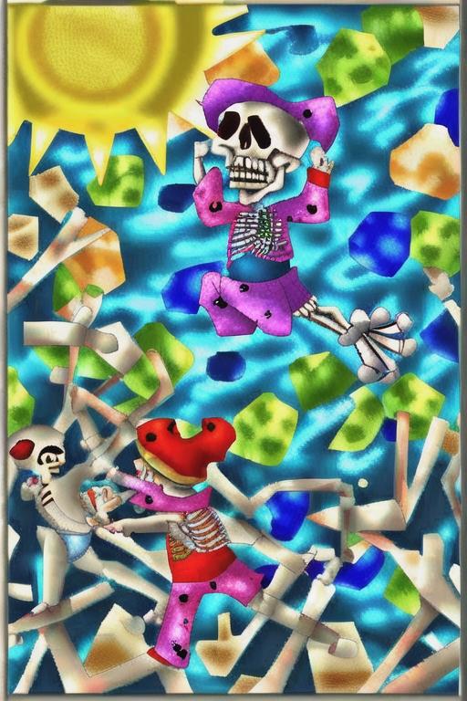 前回、晴れて水着コンテスト水着骸骨部門で優勝をおさめたキワミたち、骸骨は喜びのあまり、踊り出していていた。