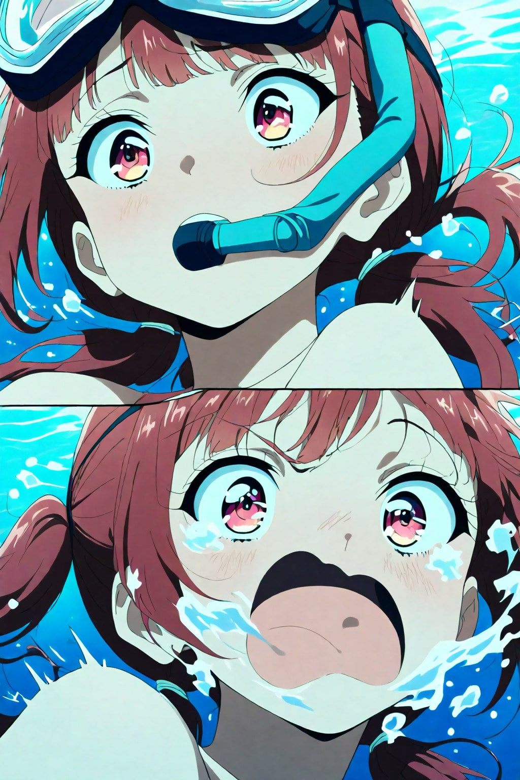 シュノーケルを付けてるのに潜ってしまい、水を飲んだというイメージ