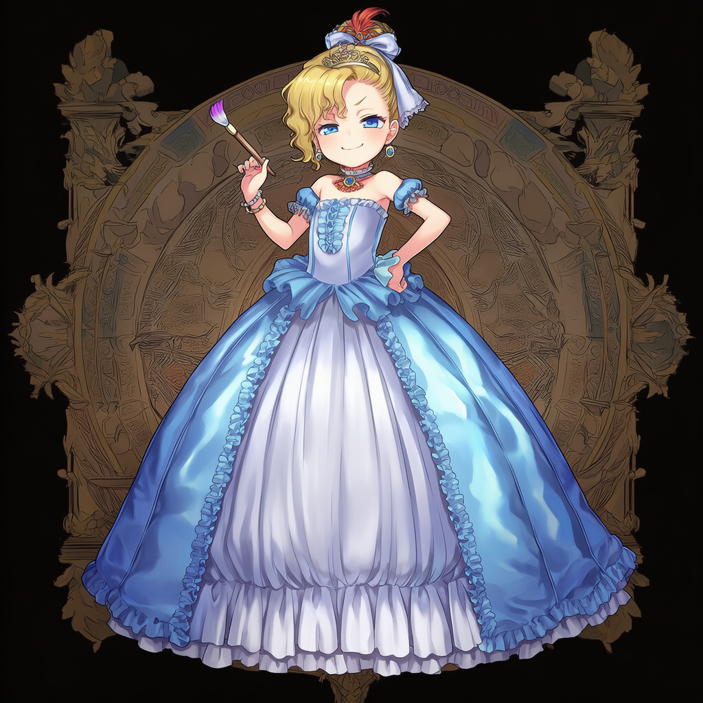 ファイナルファンタジー6の登場キャラの一人「リルム・アーロニィ」のプリンセスドレス姿の再現を目指しました。ドレスは攻略本のイラストを参考にしようと思ってましたが、攻略本が見つからずにほぼAIにお任せする形になってしまいました。