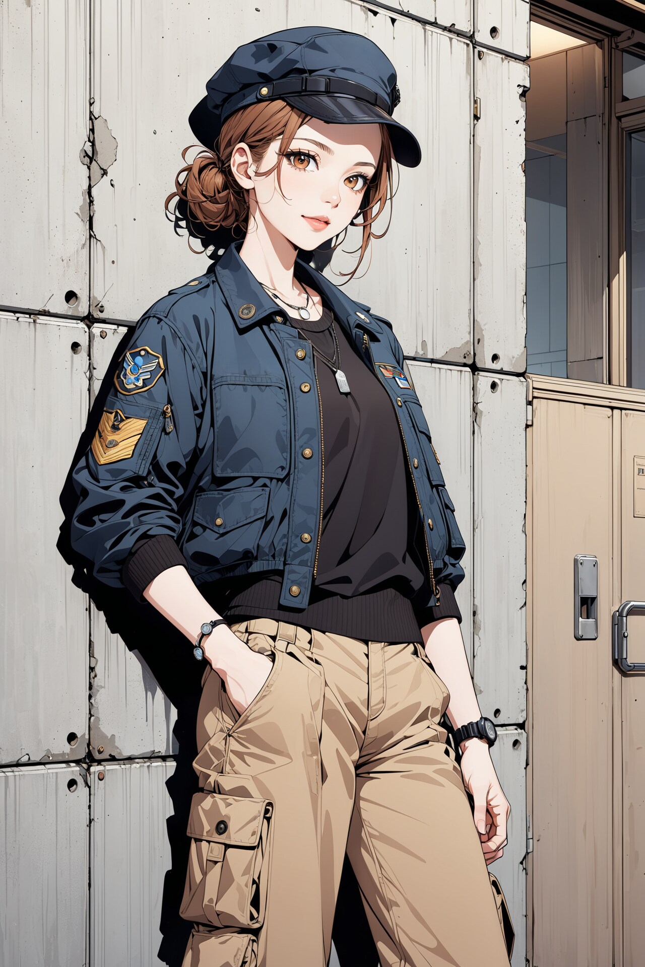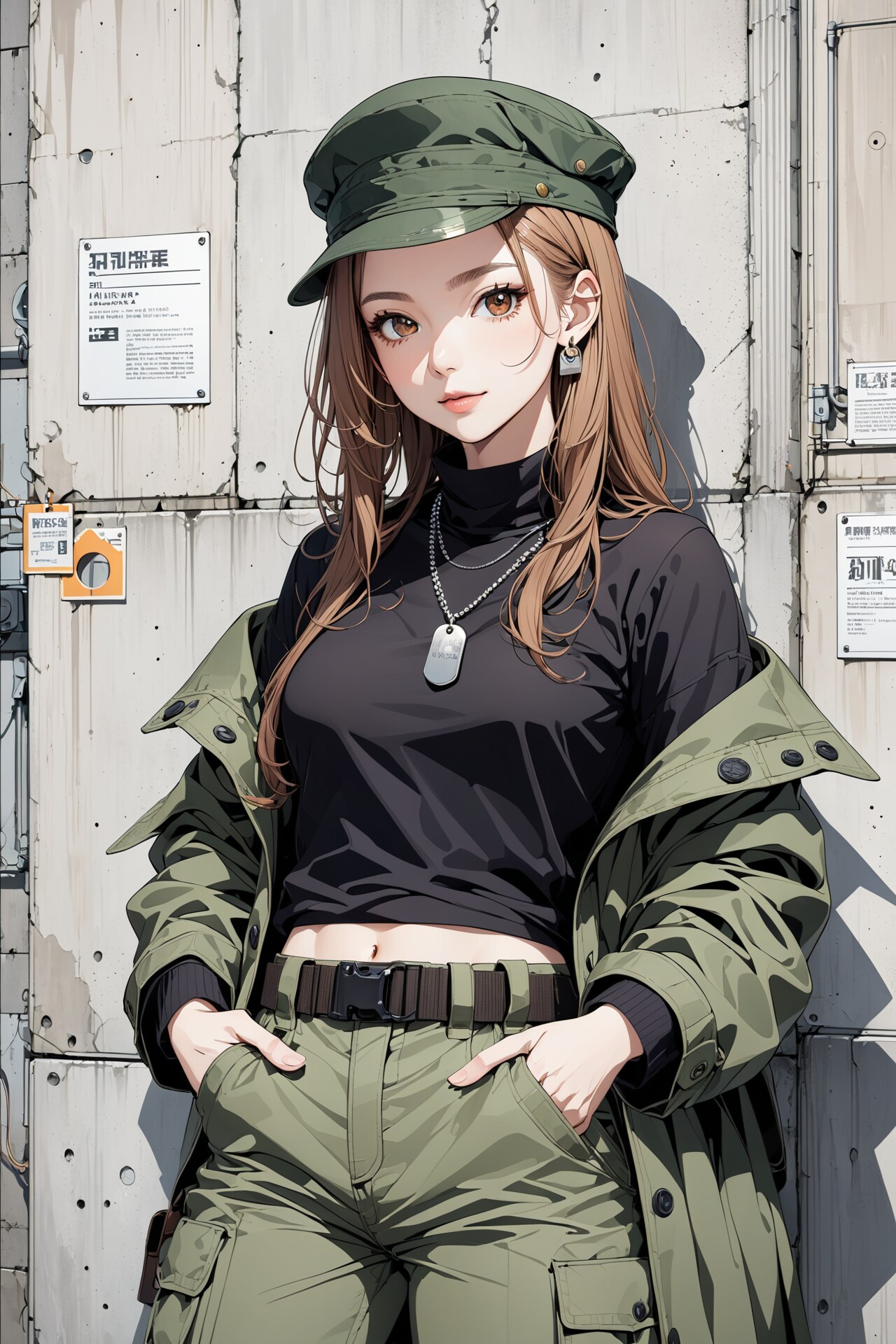 ミリタリーキャップを被ったミリタリーファッションなおねいさんたちです。
