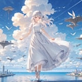 プロンプトでは「blue sky like the vast ocean stretching far into the distance(遠くまで広がる広大な海のような青空)」