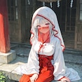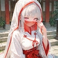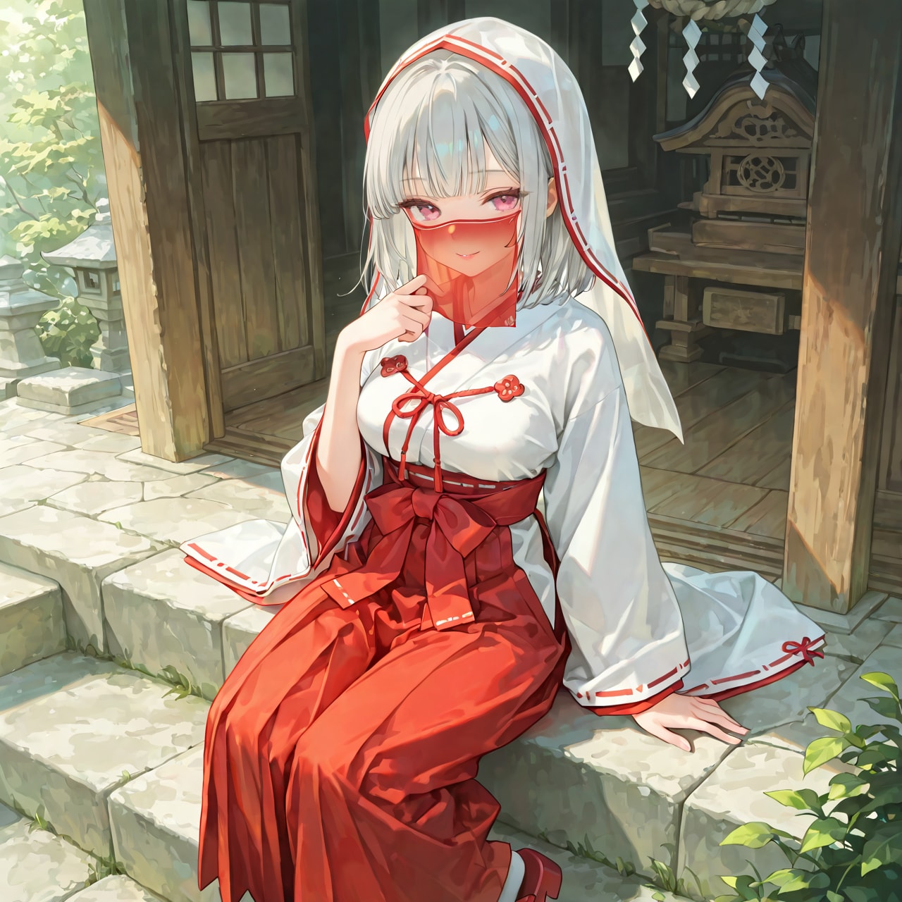 赤いフェイスベールの巫女