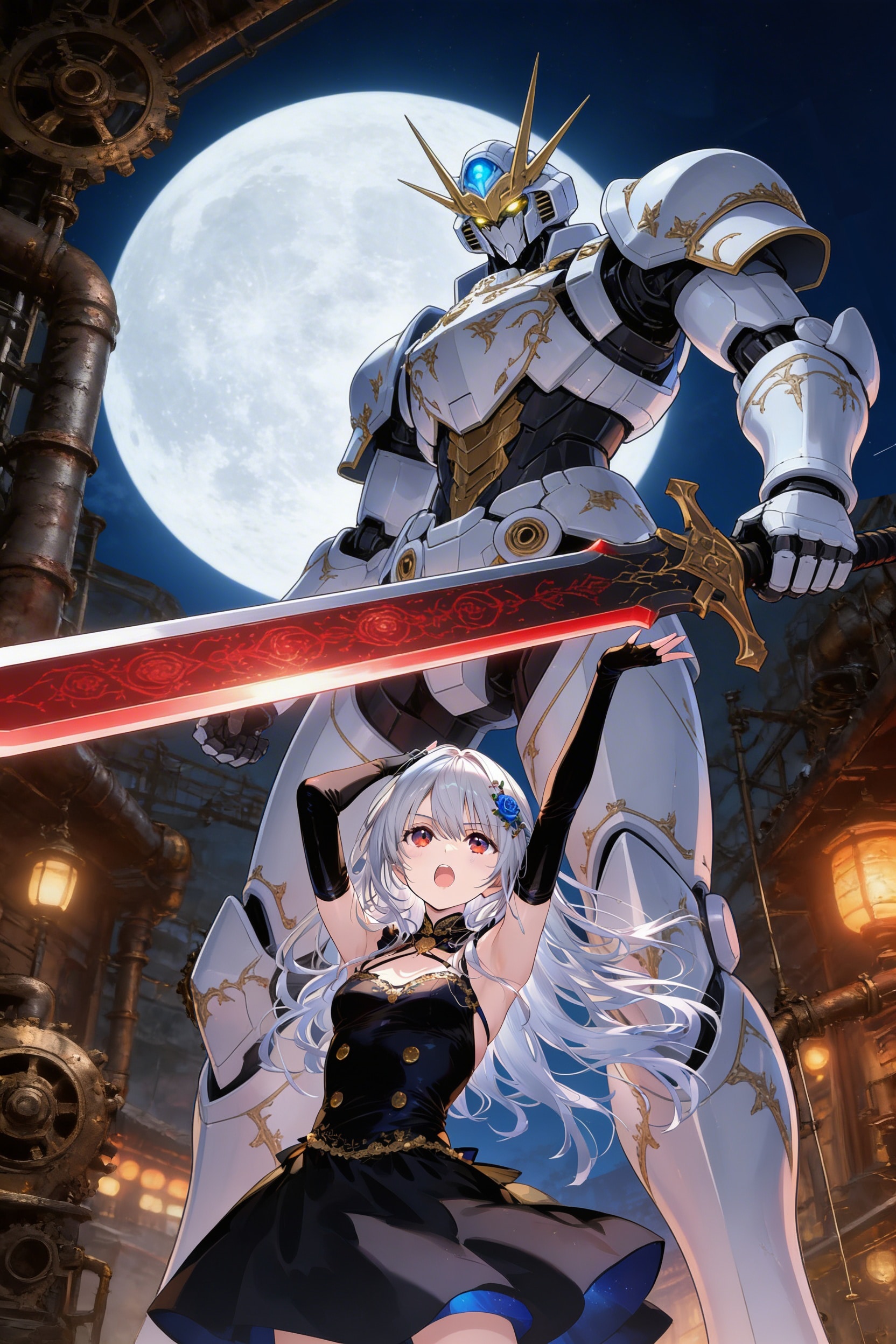 うちの子、ユーミル・アーミティッジさんとロボのデュランダルです。ロボパイ企画に投稿した時のキャラクターです。→ (https://www.chichi-pui.com/posts/696c1c51-31e7-4397-ac4f-bd39eeb5fe8a/) 今回はWAVE、PHOENIX、DAISYで出しました。最後の画像はSeedream 4.5で出したものを加工、合成したものです。