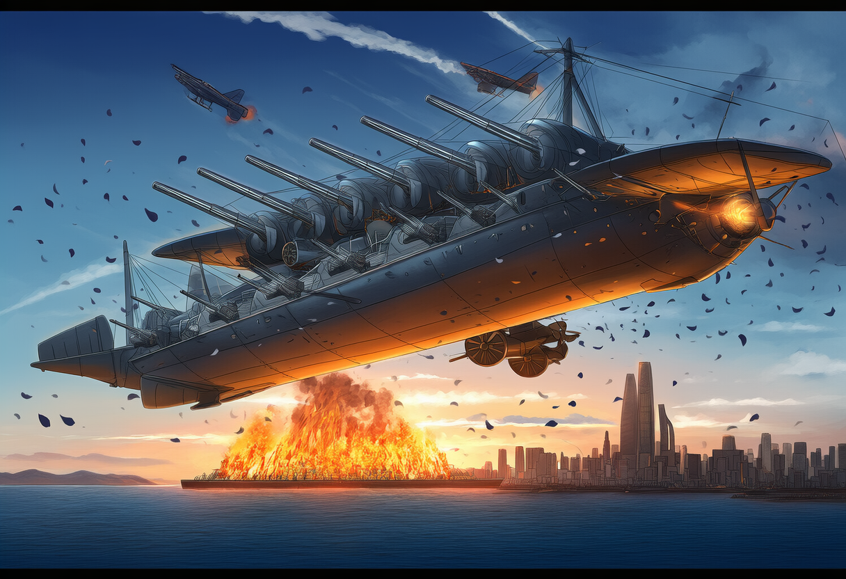 だが、虎の子の超長距離無反動砲戦艦の発射直前にガゼフ都市航空隊の特攻で一度に10隻を喪失した。