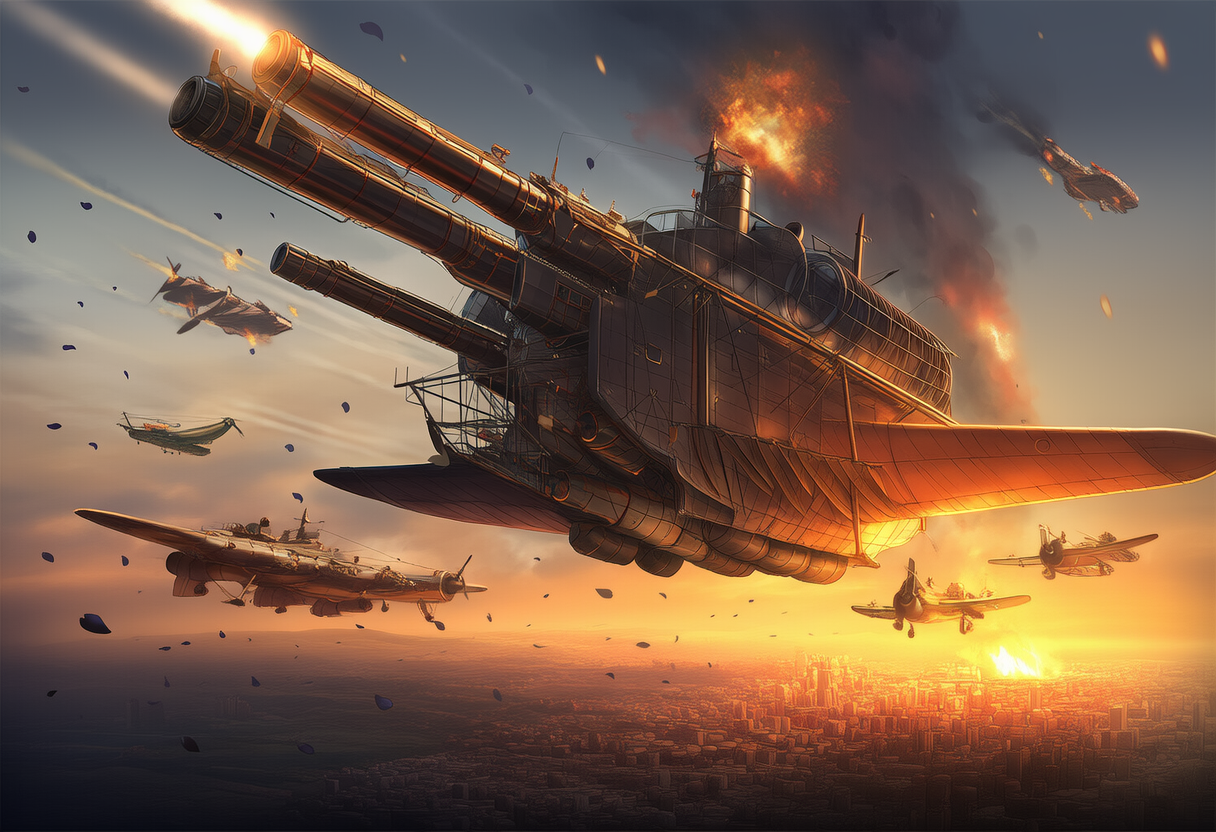 超長距離無反動砲を30隻の空中戦艦に装備し、アウトレンジで都市を攻略する。