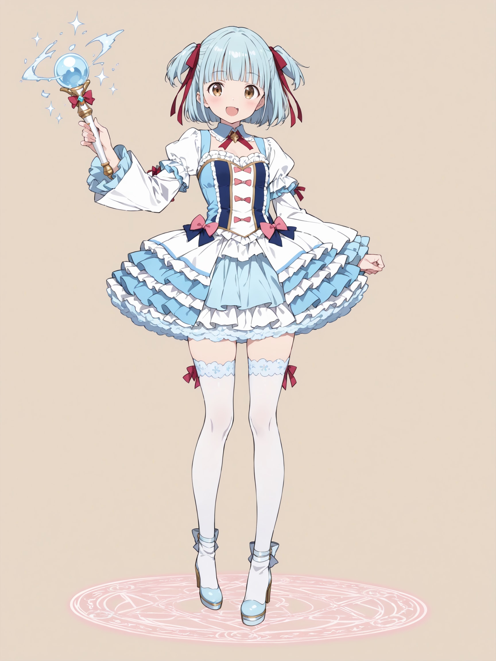 髪色に合わせた水色の衣装で構成、衣装のリボンが髪のリボンの色に影響されてますねw