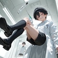 jacket partially removed, heart in eye, burnt clothes, holding fishing rod, kanji, doujin cover, pentagram, tape gag, adjusting headwear, red socks, friends, cloud print, coke-bottle glasses, oral invitation, competition school swimsuit, barbell piercing, gradient legwear, prisoner, blood on breasts, wind chime, carrying over shoulder, tape measure, flaming weapon
