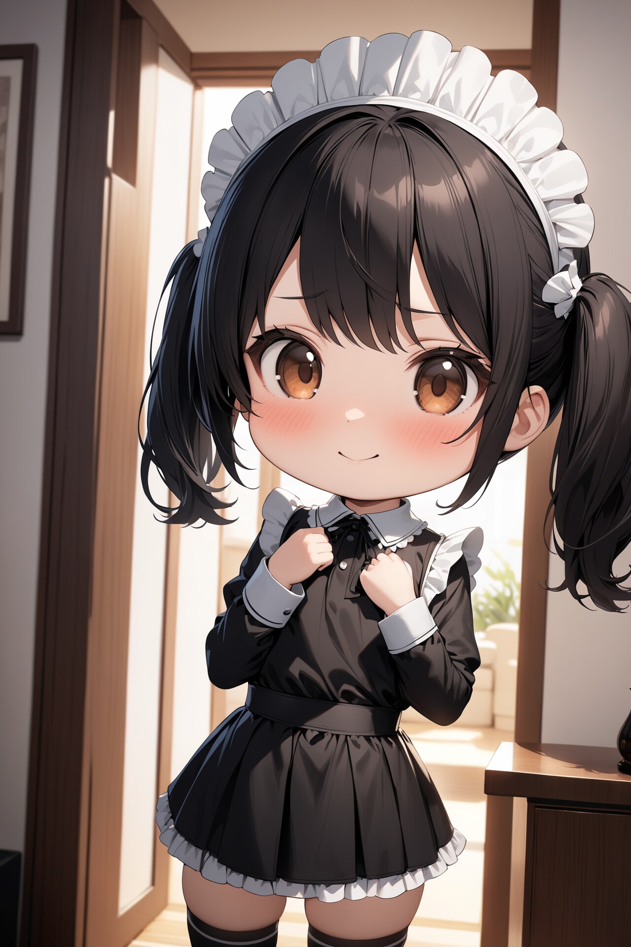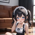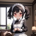 黒髪ツインテのちびキャラメイドさん